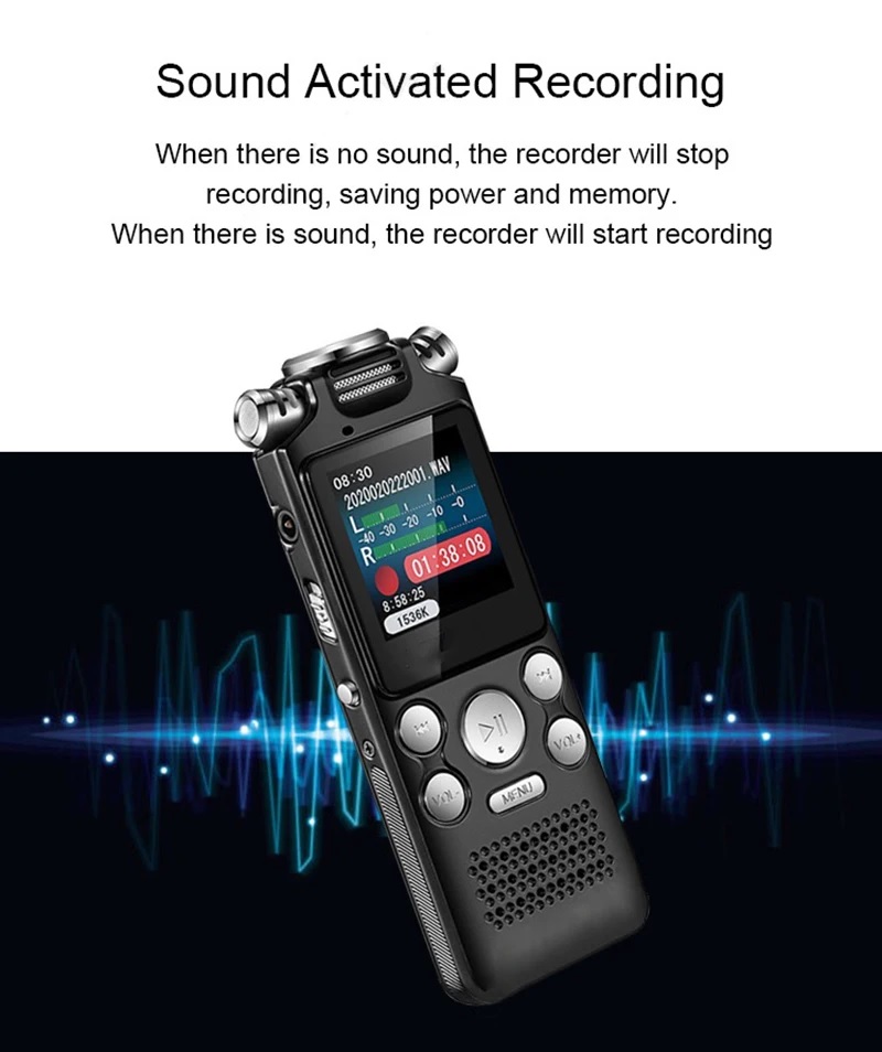 --Máy ghi âm kích hoạt bằng giọng nói AVR/VOR, chỉ ghi khi bạn nói đủ lớn, tiết kiệm dung lượng lưu trữ.