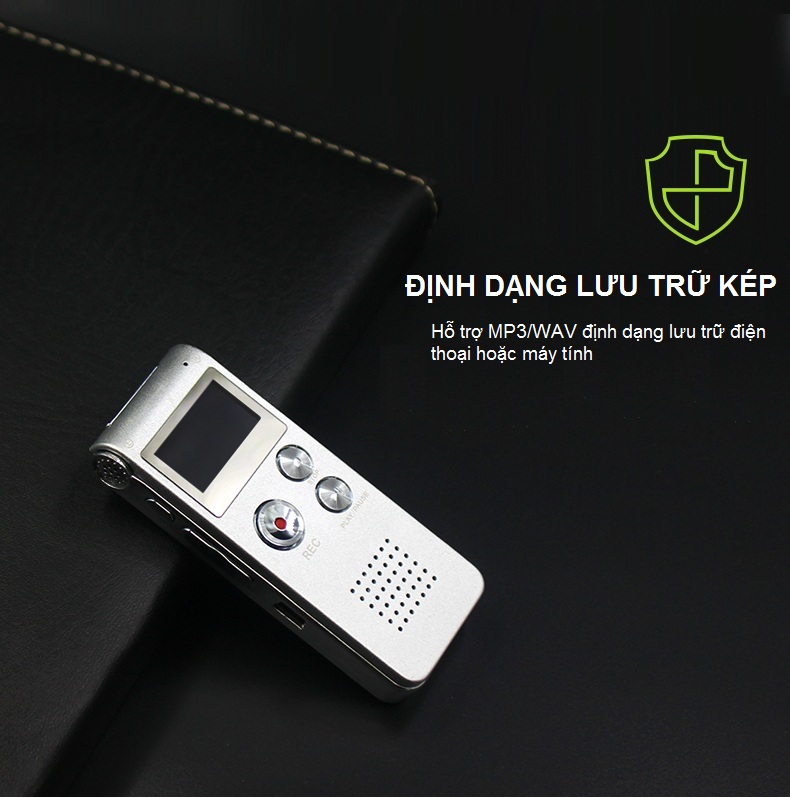Chất liệu vỏ: Hợp kim kẽm Màn hình: Màn hình màu TFT 1,44 inch Định dạng ghi âm và tốc độ lấy mẫu: Định dạng WAV (32Kbps-1536Kbps) Chất lượng ghi âm: WAV 512Kbps (mặc định)