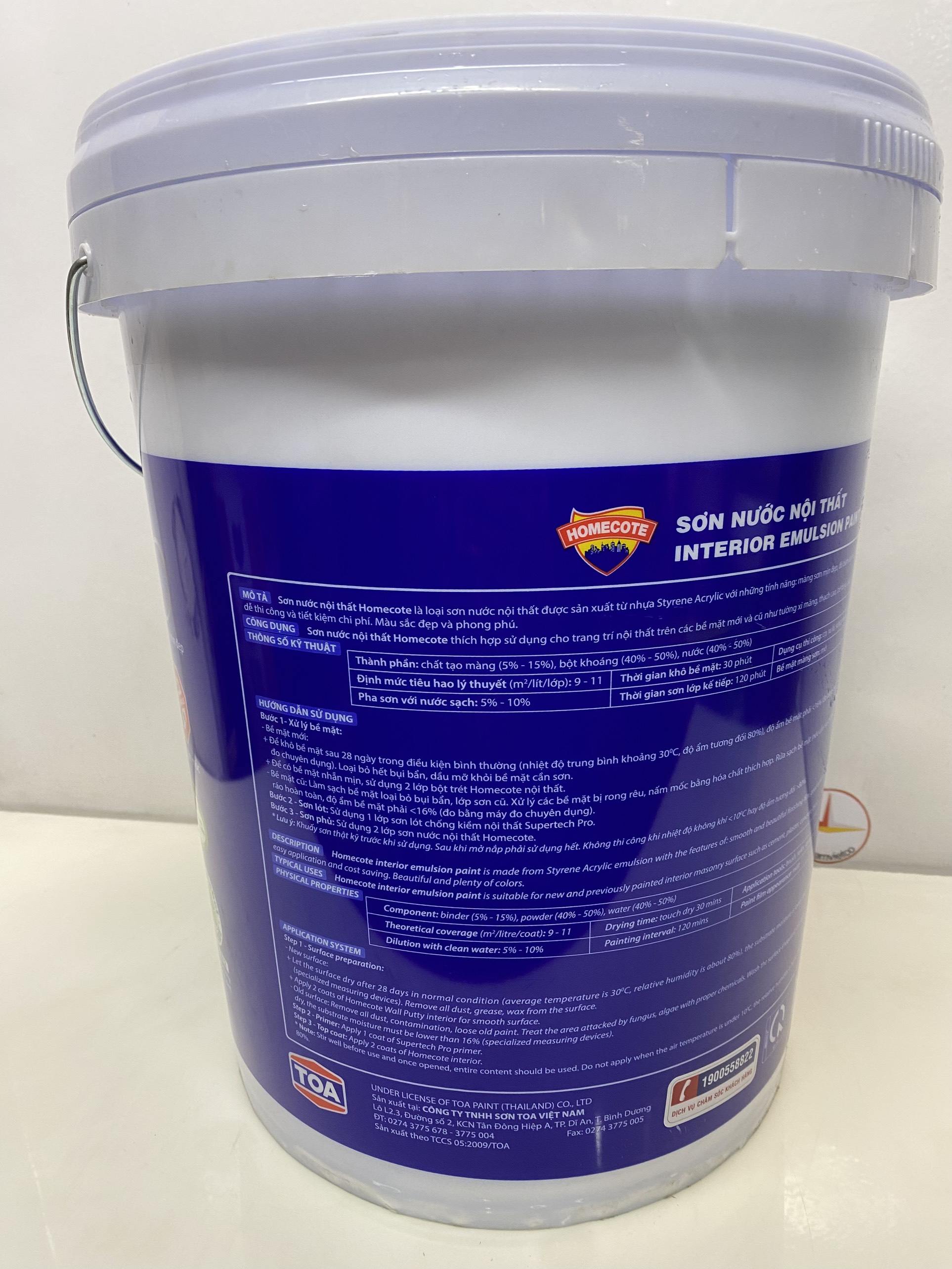 Mua tại TiktokSơn Nước Toa Homecote nội thất màu xanh da trời 7411_17L Sơn Nước nội thất Toa Homecote là loại sơn nước được sản xuất từ nhựa Styren Acrylic với những tính năng: màng sơn mịn đẹp, độ bám dính tốt, dễ thi công và tiết kiệm chi phí, không sử dụng chì trong công thức.