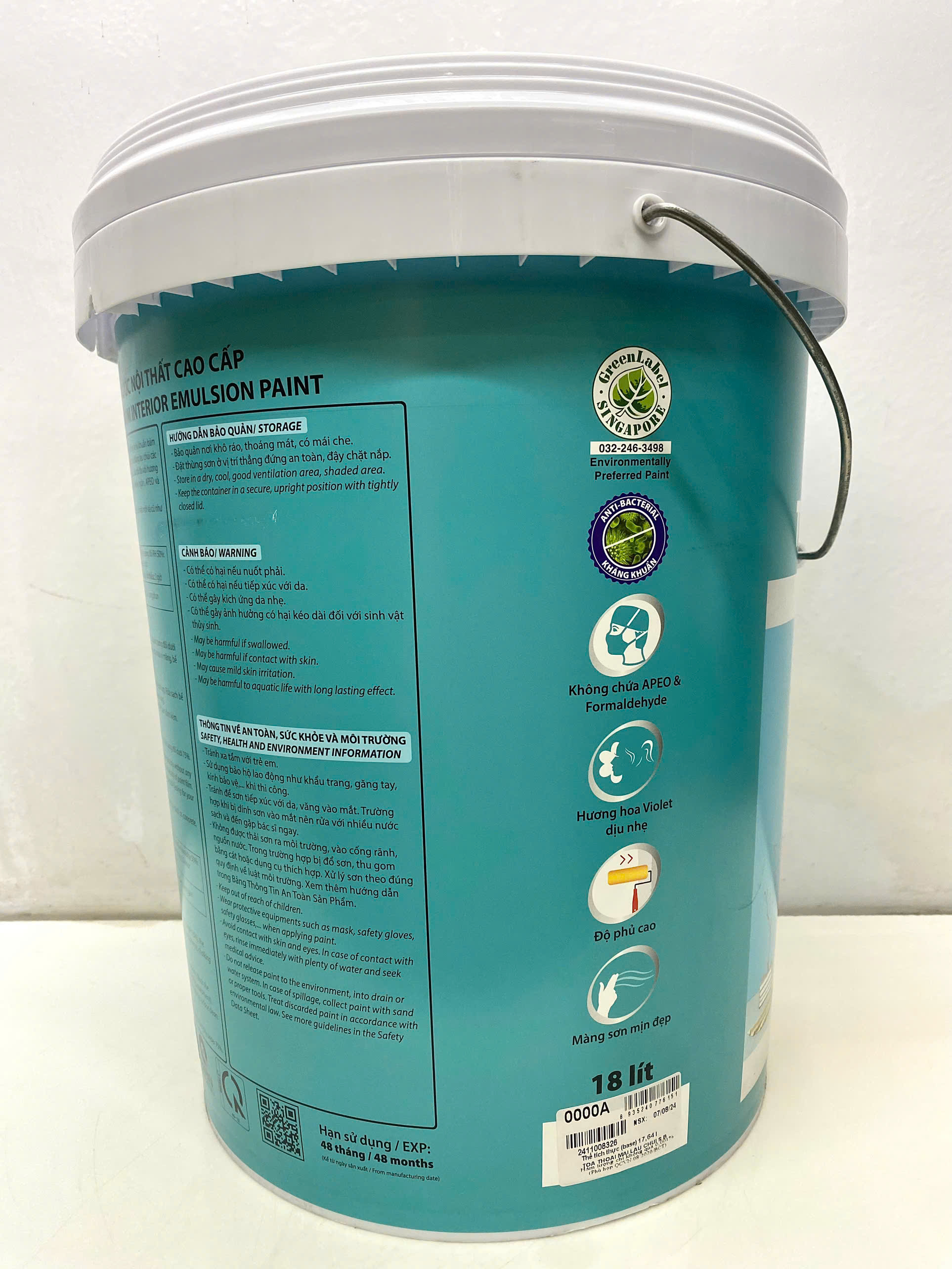 Sơn nước nội thất cao cấp Toa Nanoclean màu xanh ngọc 7508_ 5L - Được chế tạo từ nhựa acrylic nguyên chất với công nghệ tiên tiến nano giúp nhà bạn luôn an toàn, sạch sẽ