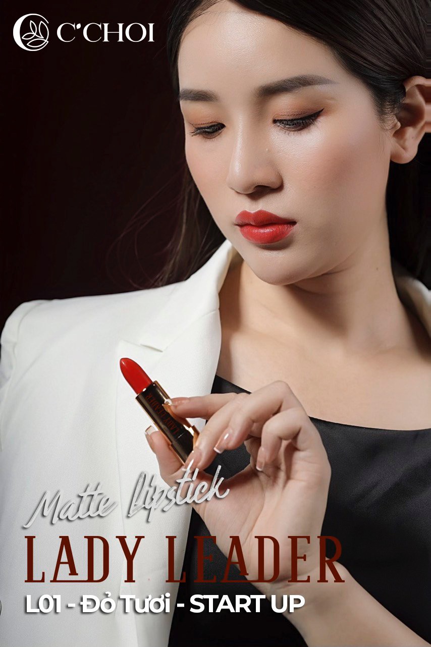 SON SÁP C’CHOI - LADY LEADER   Son sáp đẳng cấp Lady Leader gồm 6 màu dẫn đầu xu hướng, được yêu thích nhất hiện nay: L01- Start Up : Đỏ Tươi L02 –