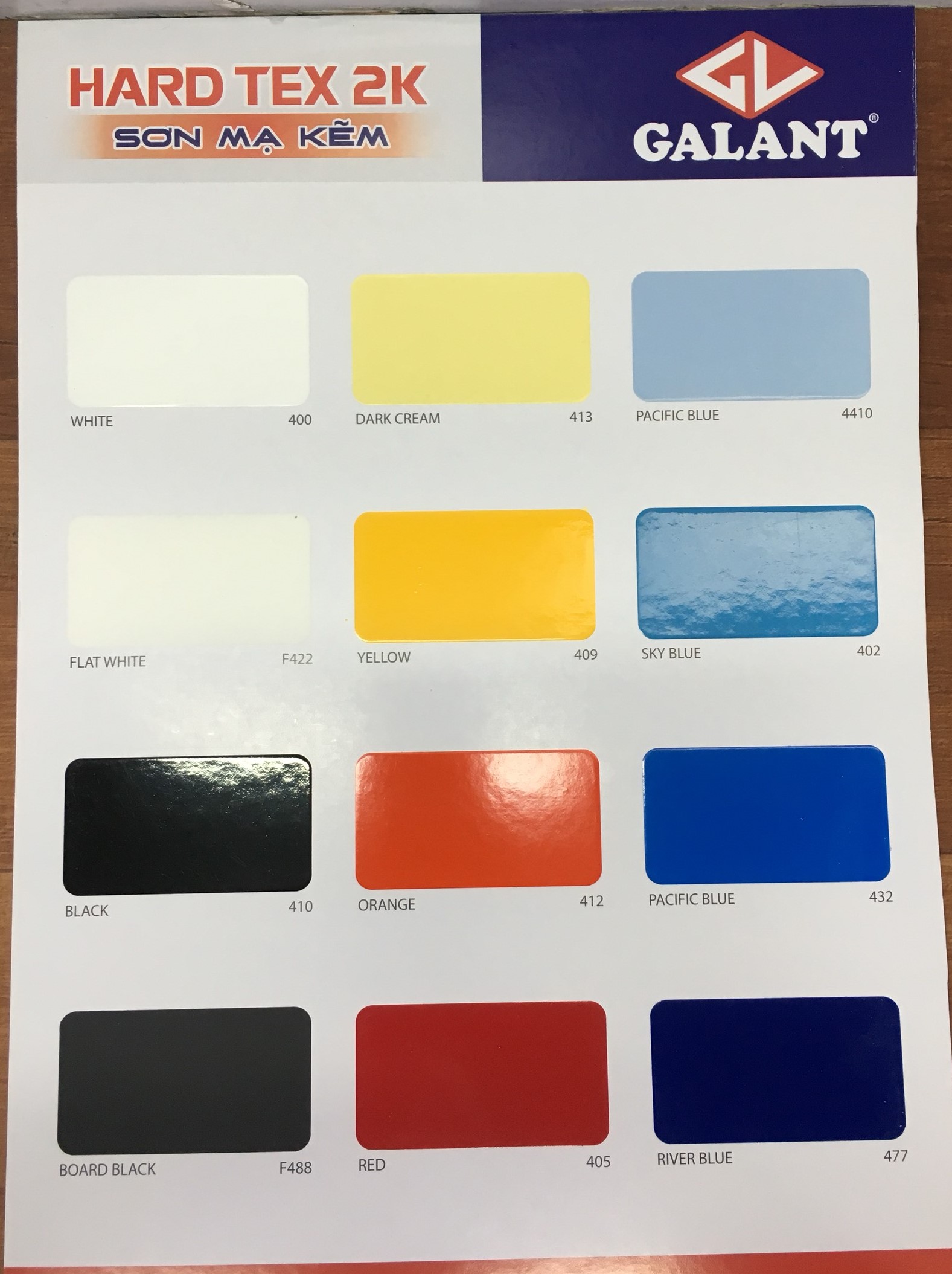 Mua tại TiktokSơn sắt mạ kẽm không cần lót Galant Hard Tex 2K Flat Yellow 409 1L/bộ Sơn sắt mạ kẽm hard tex 2k Galant Là loại sơn hai thành phần, khô nhanh, độ bám dính tốt, độ bóng cao, độ cứng lớp sơn phủ đạt tối đa với khả năng chống hóa chất và các điều kiện thời tiết rất tốt. Galant hard tex 2K thích hợp cho các bề mặt kim loại như thép tráng kẽm, thép không rỉ, nhôm, kính,, hợp kim kẽm và bề mặt gỗ. Đặc điểm: