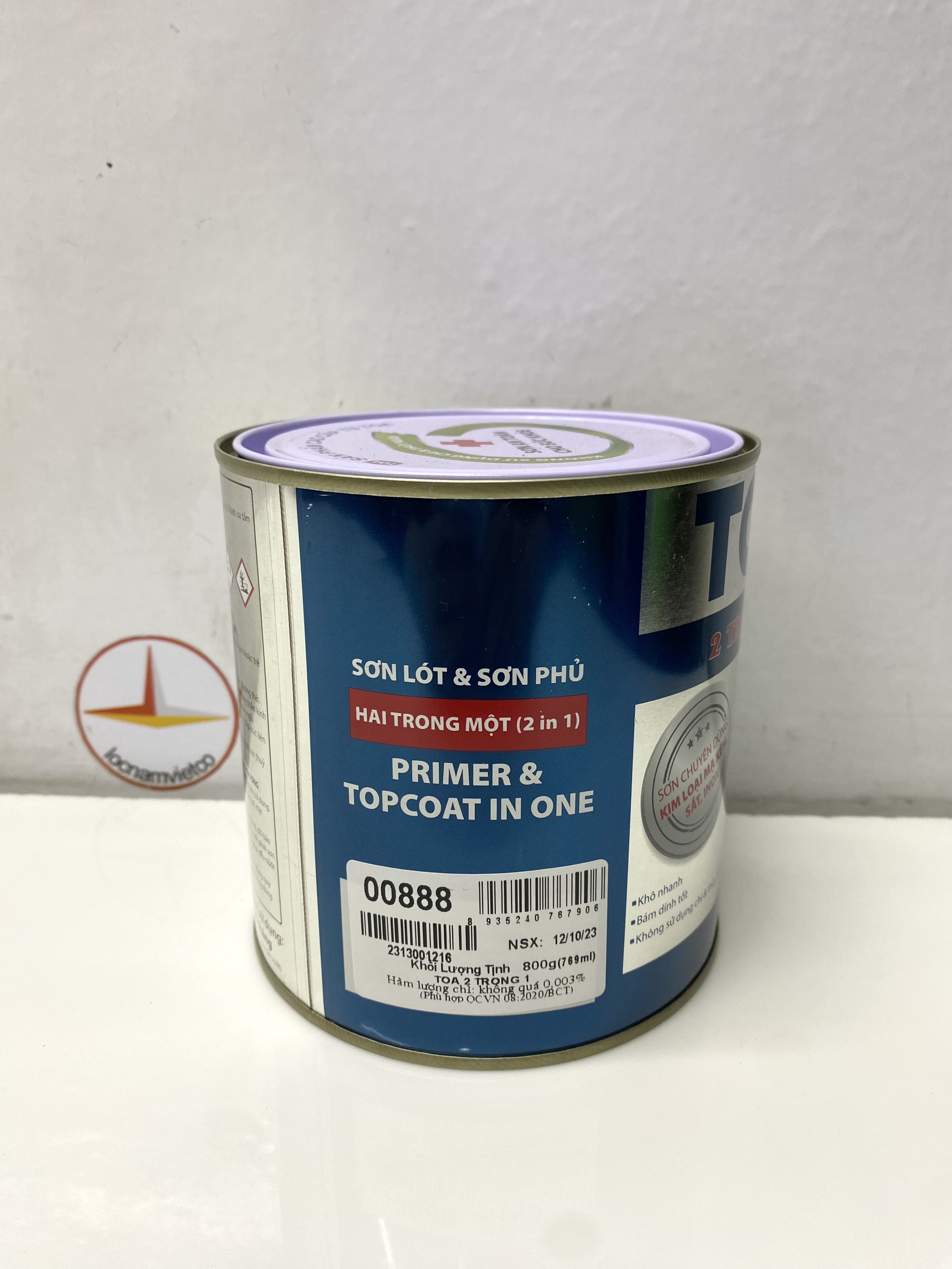 Mua tại TiktokSơn sắt mạ kẽm Toa 2 trong 1 màu đen mờ 888_ 800Gr Sơn sắt mạ kẽm TOA 2 trong 1 là dòng sơn có cấu tạo chủ yếu từ nhựa Acrylic một thành phần với sự kết hợp của lớp sơn lót và sơn phủ trong cùng một một sản phẩm. Đây là loại sơn an toàn cho sức khỏe với các đặc tính nổi bật: bám dính tuyệt hảo trên nhiều bề mặt, khô nhanh, màng phim cứng chắc, không sử dụng crom, chì.