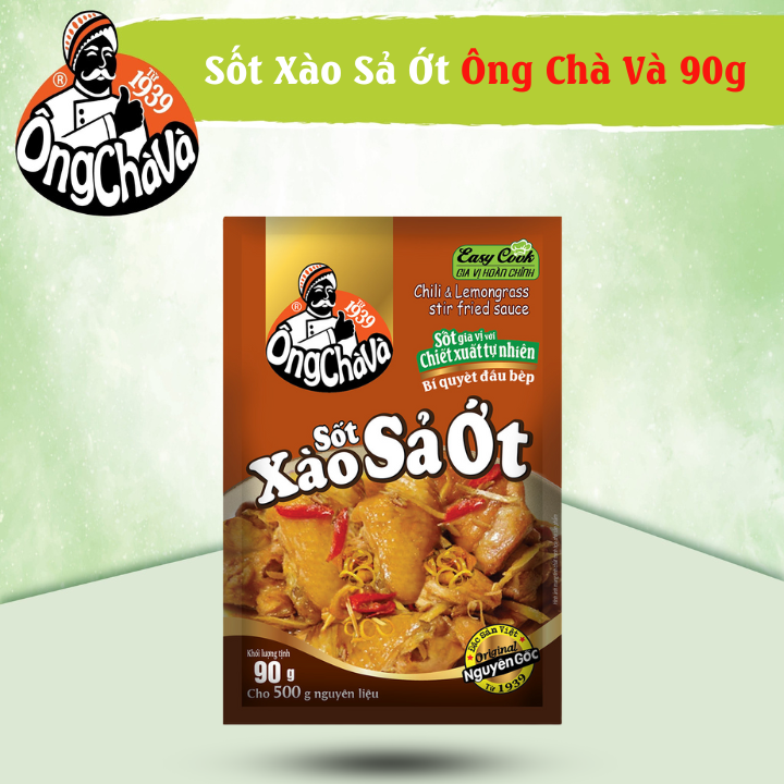 Mua tại TiktokSốt xào sả ớt Ông Chà Và 90g là công thức phối trộn độc đáo giữa chiết xuất rau củ quả tươi cùng các loại gia vị truyền thống được chọn lọc, mang đến món ngon chuẩn vị trong tích tắc mà không cần nêm nếm thêm bất kỳ gia vị nào khác.