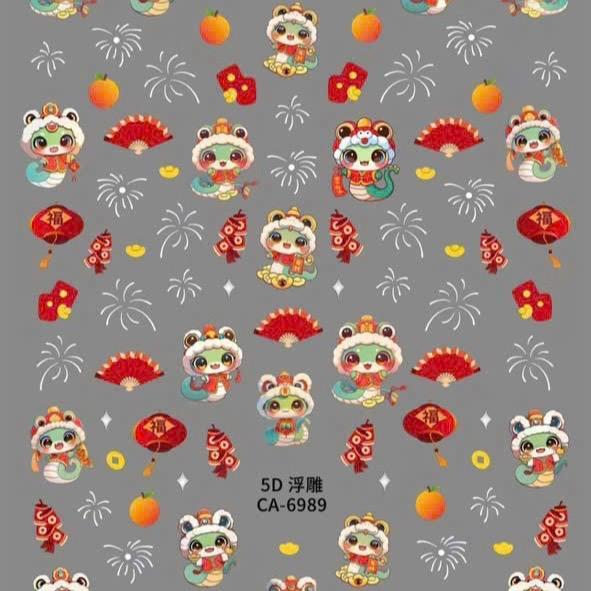 ✨Sticker 5D Dán Móng Tết 2025 Hình Rắn, Hình Dán Móng Đèn Lồng, Tia Sáng p.hoa, Quả Đào Dễ Thương Diy