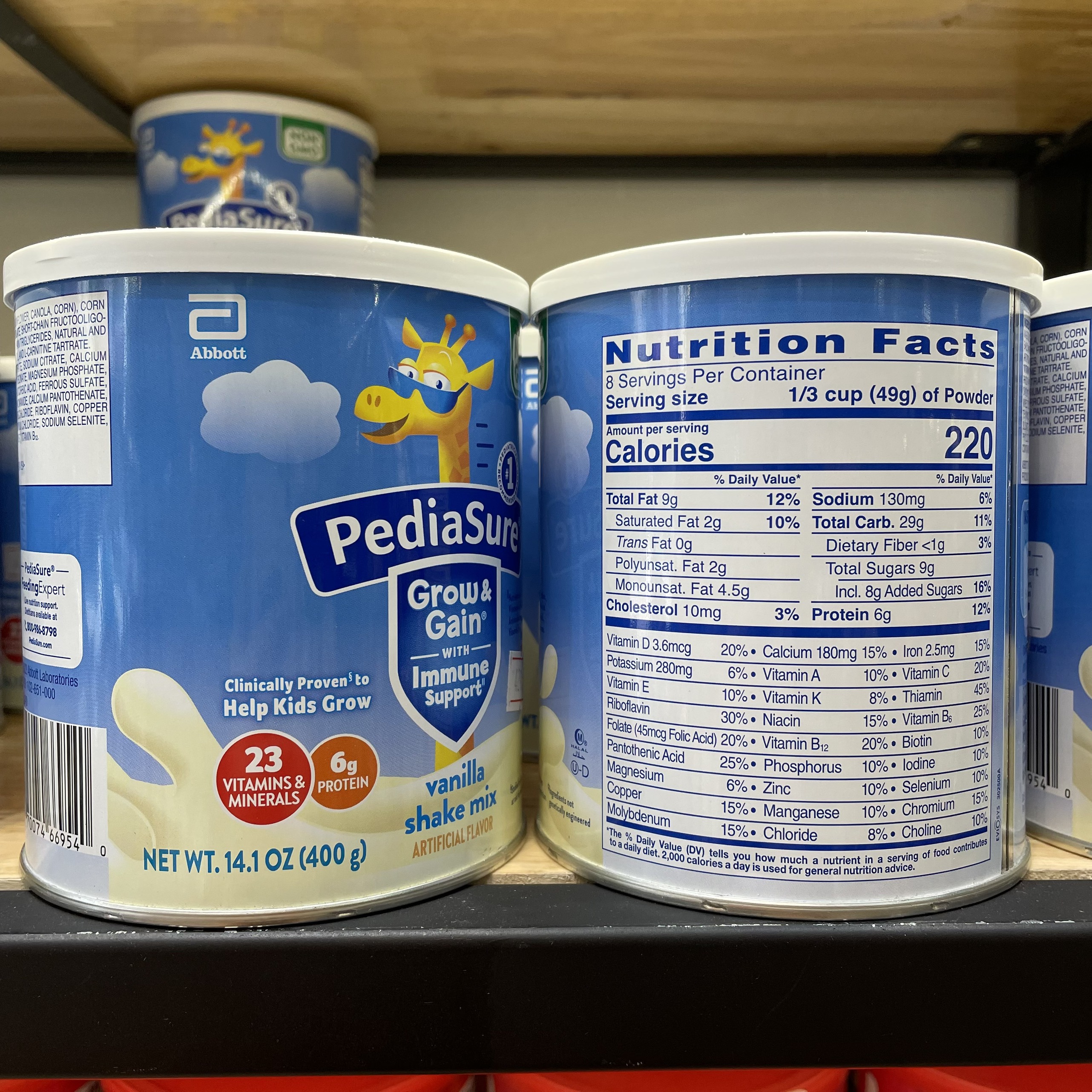 Sữa bột PediaSure Grow & Gain Non-GMO chứa lượng dinh dưỡng đầy đủ, cân bằng, đáp ứng khẩu phần ăn của trẻ.Chứa nhiều protein, 23 loại vitamin và khoáng chất cần thiết cho sự phát triển của trẻ nhỏ. Bổ sung Probiotics hỗ trợ sức khỏe đường tiêu hóa và hệ miễn dịch.Cung cấp DHA, Omega 3 tương đương với 20% nhu cầu mỗi ngày giúp sáng mắt, phát triển trí não, cho bé khỏe thông minh, lanh lợi, Không chứa gluten, kosher, halal phù hợp cho trẻ không dung nạp lactose.