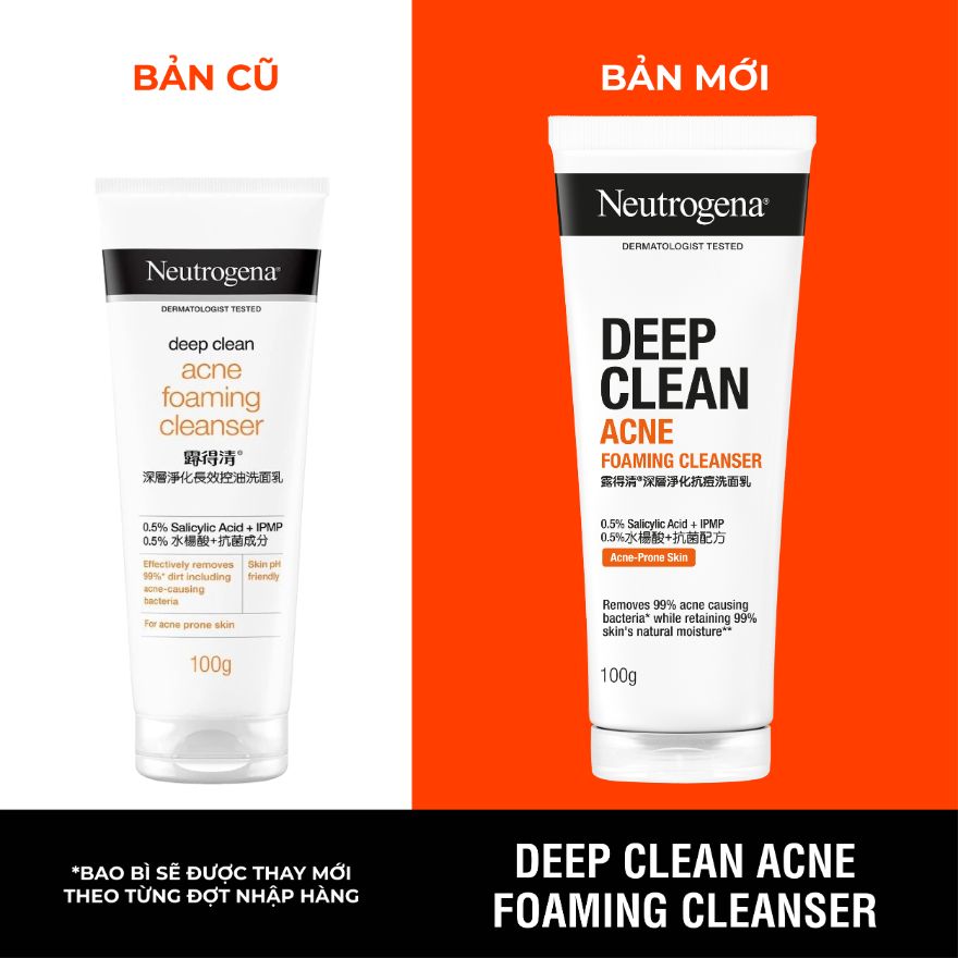 - Sữa Rửa Mặt Neutrogena Ngừa Mụn Deep Clean Acne 100g giúp loại bỏ hiệu quả 99% bụi bẩn, kể cả vi khuẩn gây mụn.