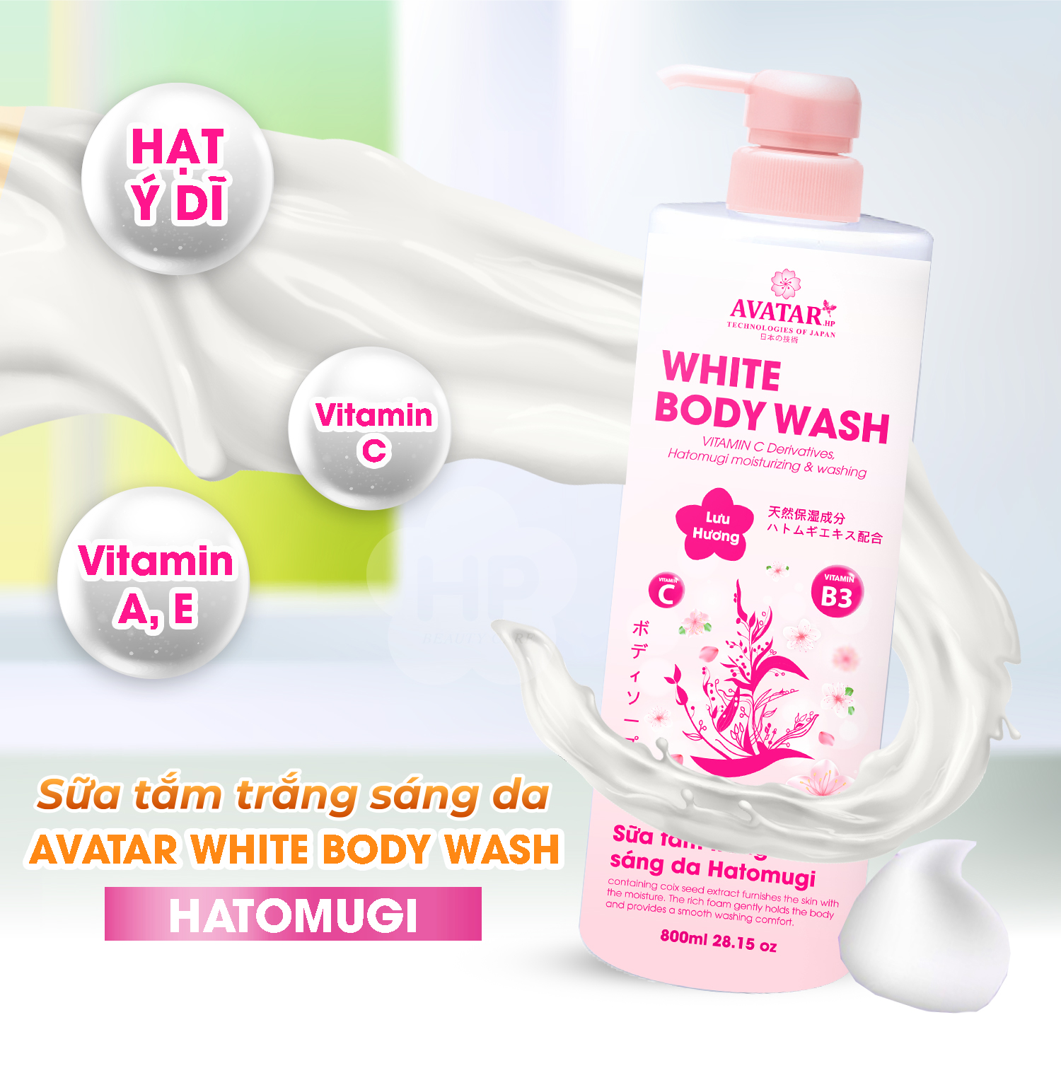 SỮA TẮM TRẮNG SÁNG DA HATOMUGI AVATAR WHITE BODY WASH Số Lô: in trên sản phẩm Xuất Xứ: Việt Nam Thể tích thực: 800ml Mã Vạch: 8936183971085 Sữa tắm làm sạch da với thành