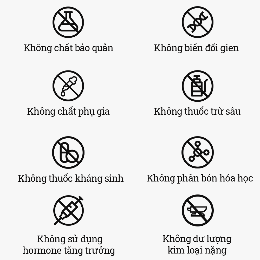 •  Không dư lượng thuốc kháng sinh.
