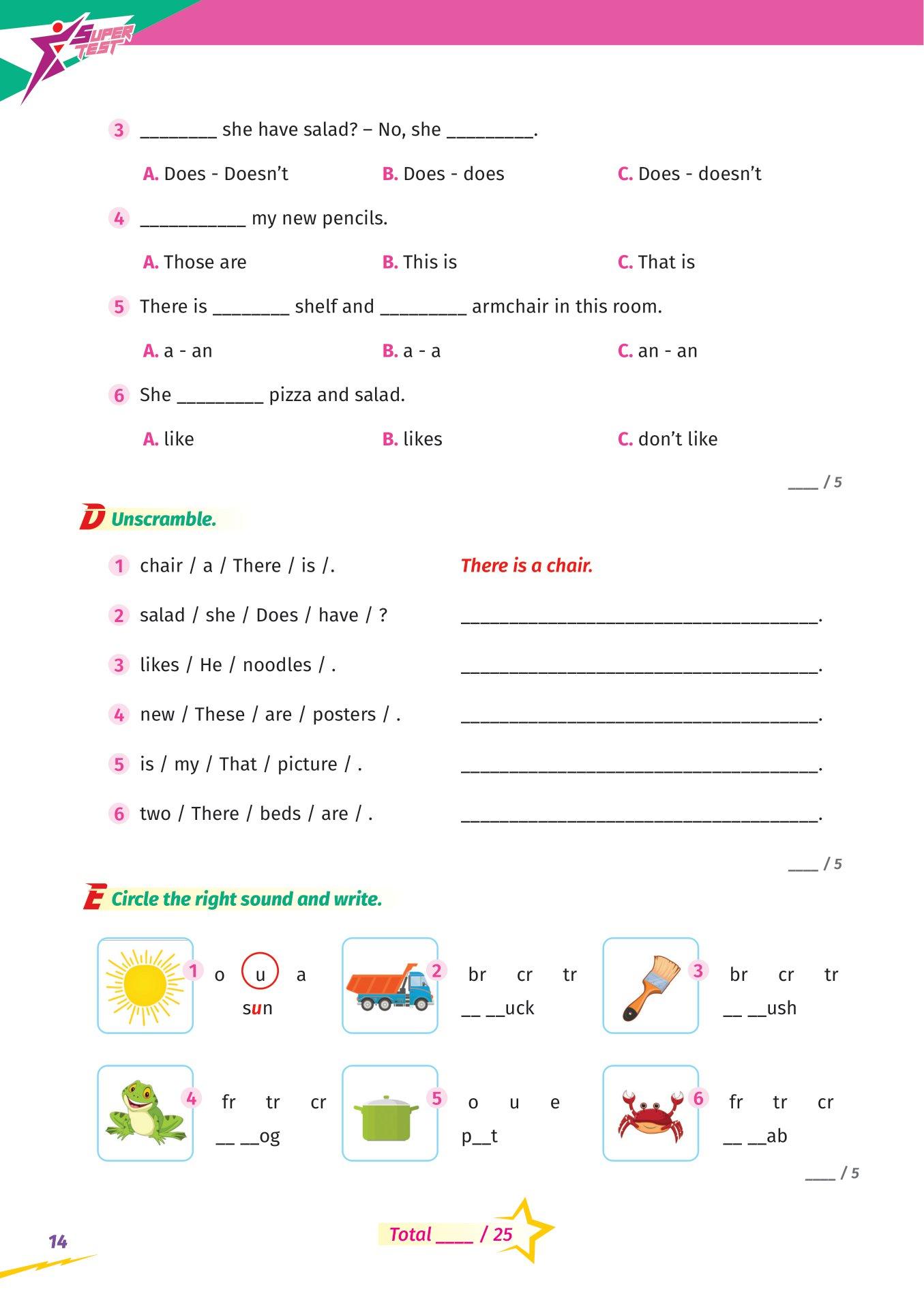 Với Bộ sách Super Test – Đề kiểm tra nhanh Tiếng Anh cho học sinh, bố mẹ sẽ giúp con tiến bộ từng ngày, tự tin với khả năng ngôn ngữ của m.ình khi ôn luyện Tiếng Anh bởi các bài tập về 4 kỹ năng: Nghe – Nói – Đọc – Viết được liên kết với nhau theo logic của bài học.