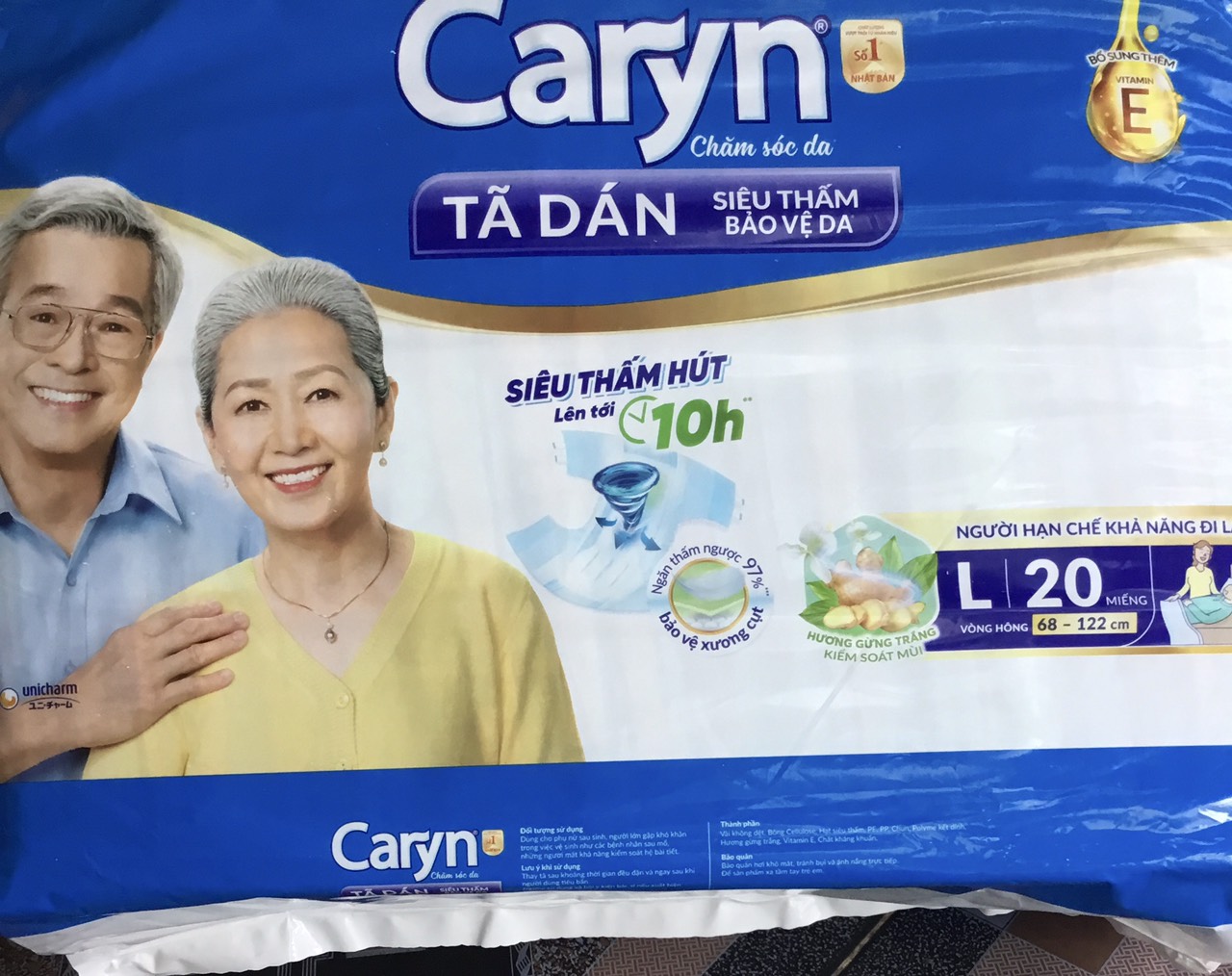 Tã dán Siêu thấm Caryn L20 (mẫu cũ Caryn ML20) cải tiến mới với “Đệm thấm xanh" bảo vệ vùng xương cụt, với các hạt thấm hút tăng cường giúp thấm hút tối đa, ngăn thấm ngược trở lại đến 97%, cho vùng xương cụt thêm khô thoáng, giảm nỗi lo các vấn đề về da, là lựa chọn tốt cho người dùng hạn chế khả năng đi lại. Thiết kế mở tiện thay trong tư thế nằm giúp việc chăm sóc trở nên thật dễ dàng. Dùng cho phụ nữ sau sinh, người lớn gặp khó khăn trong việc vệ sinh như các bệnh nhân sau mổ, những người mất khả năng kiểm soát hệ bài tiết, người hạn chết khả năng đi lại (ngồi hoặc nằm 1 chỗ)