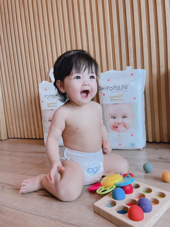 - Tã/ Bỉm POPOLINI với phần lưng thun co giãn 360 độ linh hoạt và mềm mại giúp hoạt động của bé trở nên dễ dàng, năng động.