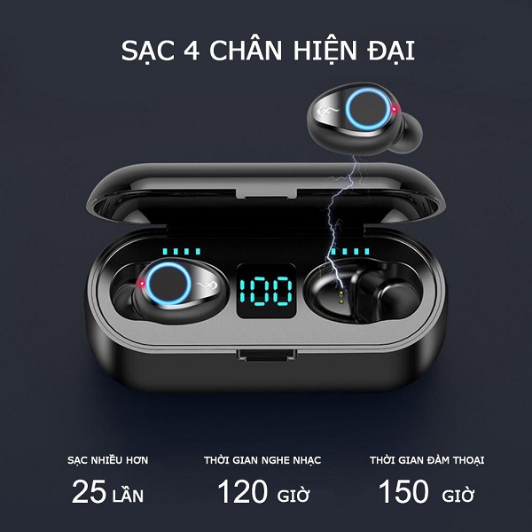Mua tại TiktokTai nghe không dây bluetooth LANITH cao cấp 5.0 TWS F9 – Tai nghe Bluetooth kiểu dáng hiện đại, thời thượng – TA0002 Tích hợp Bluetooth 5.0 cao cấp Khoảng cách truyền 10m Âm thanh 3D cao cấp Pin Dock sạc: 2000mAh Thời gian sạc: 5-6 giờ Thời gian sử dụng: 3-4 giờ Phù hợp với nhiều hệ điều hành như: Android, IOS, Windows, Laptop