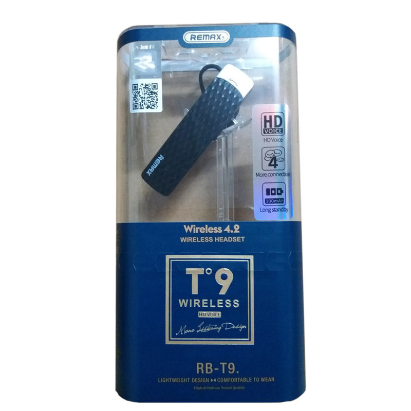 Thương hiệu: Remax Model: RB-T9 Màu sắc: Đen Kích thước (D x R) 6.5 x 2cm Khối lượng: 8g Loại Pin: Polymer Lithium (công nghẹ mới nhất hiẹn nay) Dung lượng Pin: 100mah Thời gian