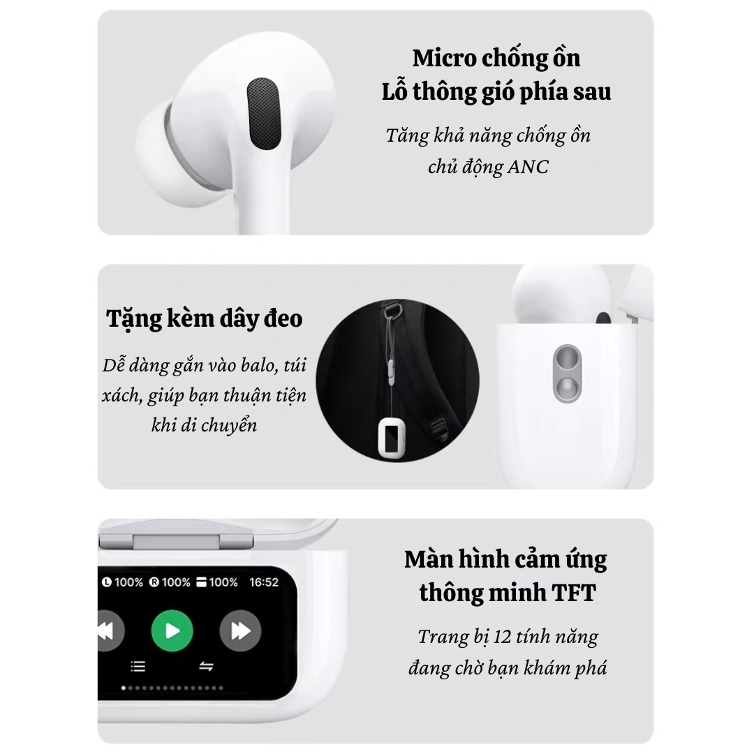 - Công nghệ chống ồn ANC Loại bỏ tiếng ồn hiệu quả, tận hưởng âm thanh trọn vẹn - Bluetooth 5.3 hiện đại Kết nối ổn định, độ trễ thấp, tiết kiệm pin hơn -