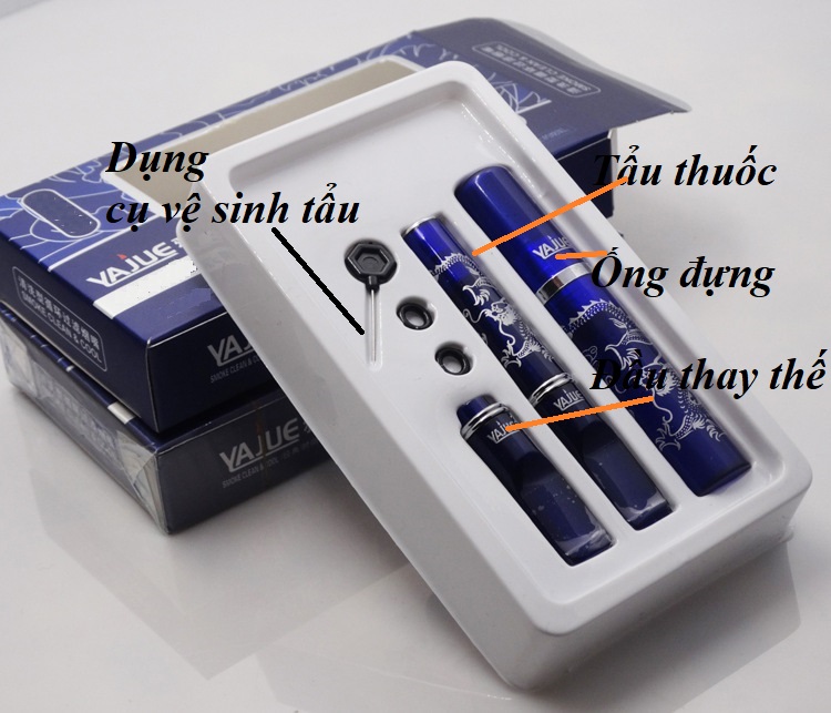 - Trọn bộ gồm: 1 tẩu thuốc, 1 hộp nhựa đựng, 1 đầu hút thay thế