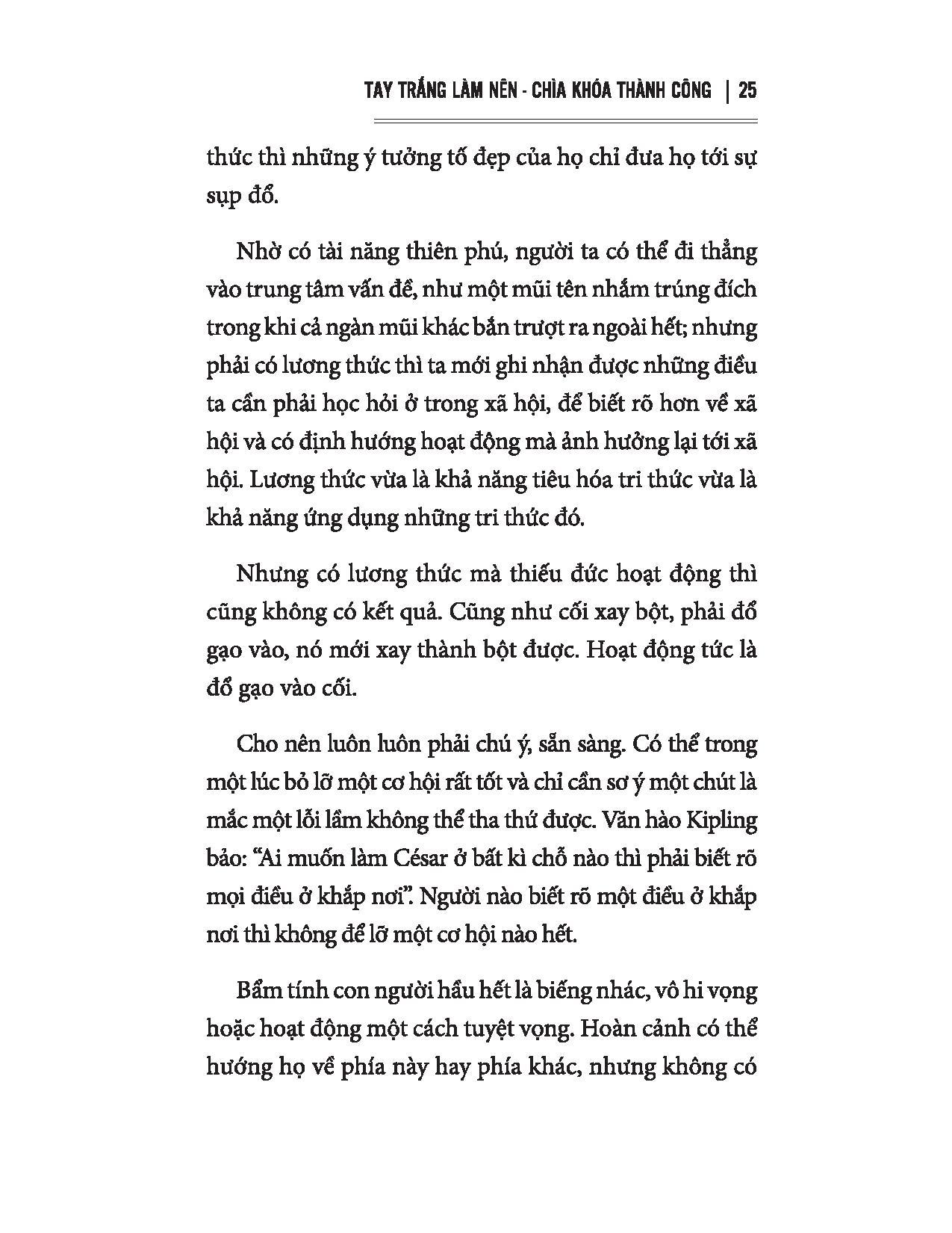 Nhưng nếu làm giàu một cách lương thiện như tác giả, để tôi luyện khả năng, tư cách của mình vì trường kinh doanh là nơi đào tạo những con người biết nhận xét, phán đoán, quyết định, kiên nhẫn làm việc và chiến đấu và để cho quốc gia thịnh vượng lên, thì trong hiện tình nước ta, nó là bổn phận của mỗi công dân. Như trên đã nói, nước ta không sao mở mặt được với đời nếu kinh tế không phát triển và mọi ngành kinh doanh đều ở trong tay ngoại nhân cả. Vậy ta phải đánh đổ quan niệm cổ "vi phú bất nhân" đi. Nó có cái đẹp của nó, nhưng nó không hợp với hoàn cảnh lúc này nữa.