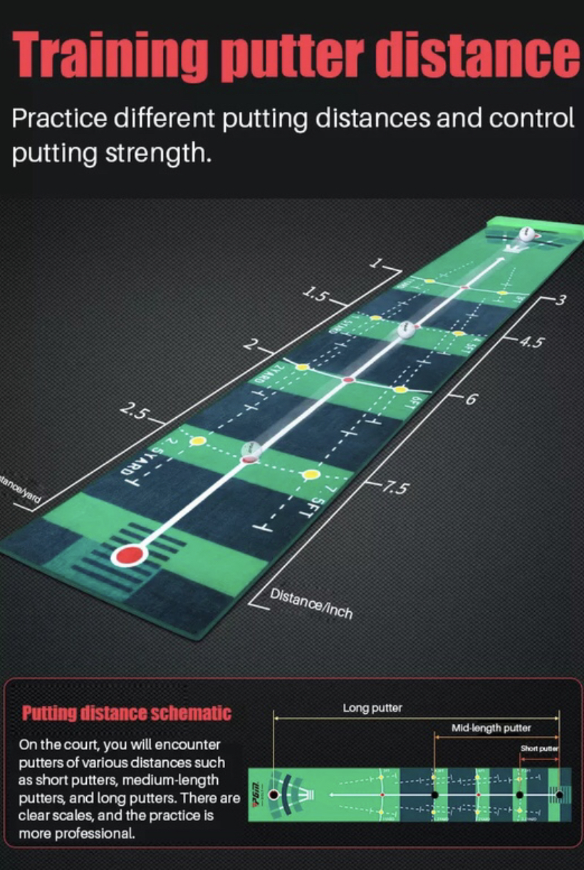 Thảm tập Putting Mat. Loại thảm Putting này là một sản phẩm có chất lượng cao, có thể đặt bóng ở nhiều vị trí khác nhau, đi kèm đó trên bề mặt thảm có vẽ