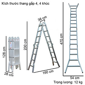 Mua tại TiktokThang nhôm gấp 4 khúc NIK44A & NIK44 Thang nhôm gấp 4 khúc khóa sập tự động là loại thang được thiết kế với 4 khúc thang riêng biệt, được nối với nhau bằng hệ thống chốt khóa sập tự động và các khớp nối. Thang có thể gấp gọn lại giúp người dùng dễ dàng mang vác, di chuyển. Cấu tạo:Thang nhôm gấp 4 khúc khóa sập tự động có cấu tạo gồm các bộ phận chính sau: ️1: Bậc thang: Bậc thang được làm từ hợp kim nhôm cao cấp, có độ bền cao, chịu lực tốt. Bậc thang có chiều rộng và khoảng cách giữa các bậc phù hợp với người sử dụng, giúp người dùng leo lên xuống an toàn và thoải mái. ️2: Chốt khóa sập tự động: Chốt khóa sập tự động được làm từ hợp kim thép không gỉ, có độ bền cao. Chốt khóa tự động giúp thang được cố định chắc chắn, tránh tình trạng thang bị sập khi sử dụng. ️3: Khớp nối: Khớp nối được làm từ hợp kim thép không gỉ, có độ bền cao. Khớp nối giúp các khúc thang được nối với nhau một cách chắc chắn, đảm bảo an toàn cho người sử dụng. ️4: Chân thang: Chân thang được làm từ cao su có các rãnh chống trượt, giúp thang đứng vững trên các bề mặt không bằng phẳng. => Ưu điểm: Thang nhôm gấp 4 khúc khóa sập tự động có những ưu điểm nổi bật sau: 1: Thiết kế linh hoạt: Thang có thể gấp gọn lại giúp người dùng dễ dàng mang vác, di chuyển. Thang có thể sử dụng được ở nhiều vị trí khác nhau, phù hợp với nhiều công việc khác nhau. 2: Chất lượng cao: Thang được làm từ hợp kim nhôm cao cấp, có độ bền cao, chịu lực tốt. Chốt khóa sập tự động và khớp nối được làm từ hợp kim thép không gỉ, có độ bền cao, đảm bảo an toàn cho người sử dụng. 3: An toàn: Thang có thiết kế chắc chắn, các khớp nối được cố định chắc chắn, tránh tình trạng thang bị sập khi sử dụng. Chân thang có các rãnh chống trượt, giúp thang đứng vững trên các bề mặt không bằng phẳng. => Ứng dụng