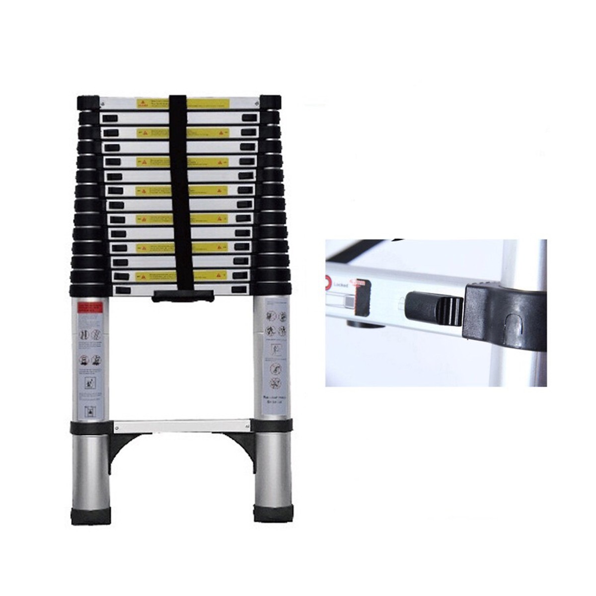 Thang nhôm rút gọn, an toàn, tiện dụng, đa năng - Nhôm 6063 không rỉ - Hàng chính hãng NIKITA Chất liệu : Nhôm + Plastic Màu sắc : Ống trắng + Đai nhựa