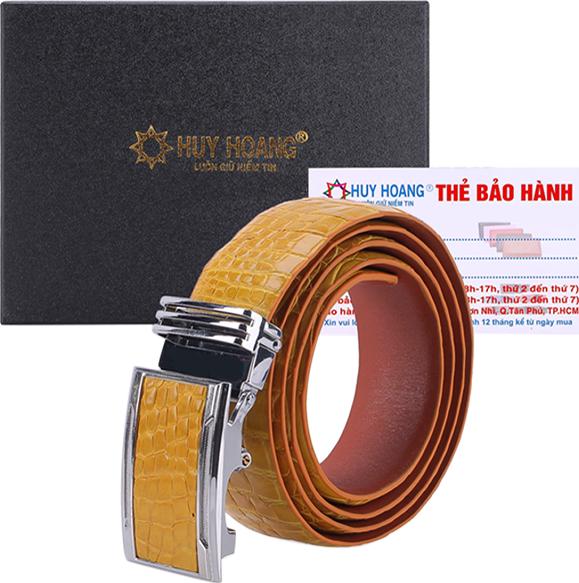 Thắt Lưng Nam Da Cá Sấu Gai Bụng Huy Hoàng HT4258 - Vàng nghệ là loại dây nịt được làm và xử lý công nghệ hiện đại từ da cá sấu thật 100%.