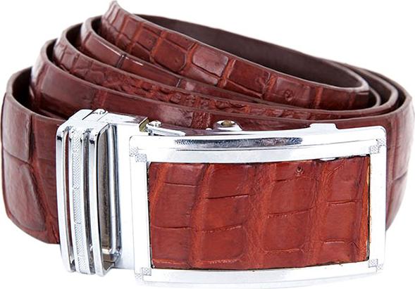 Dây nịt da cá sấu màu nâu đỏ da bụng