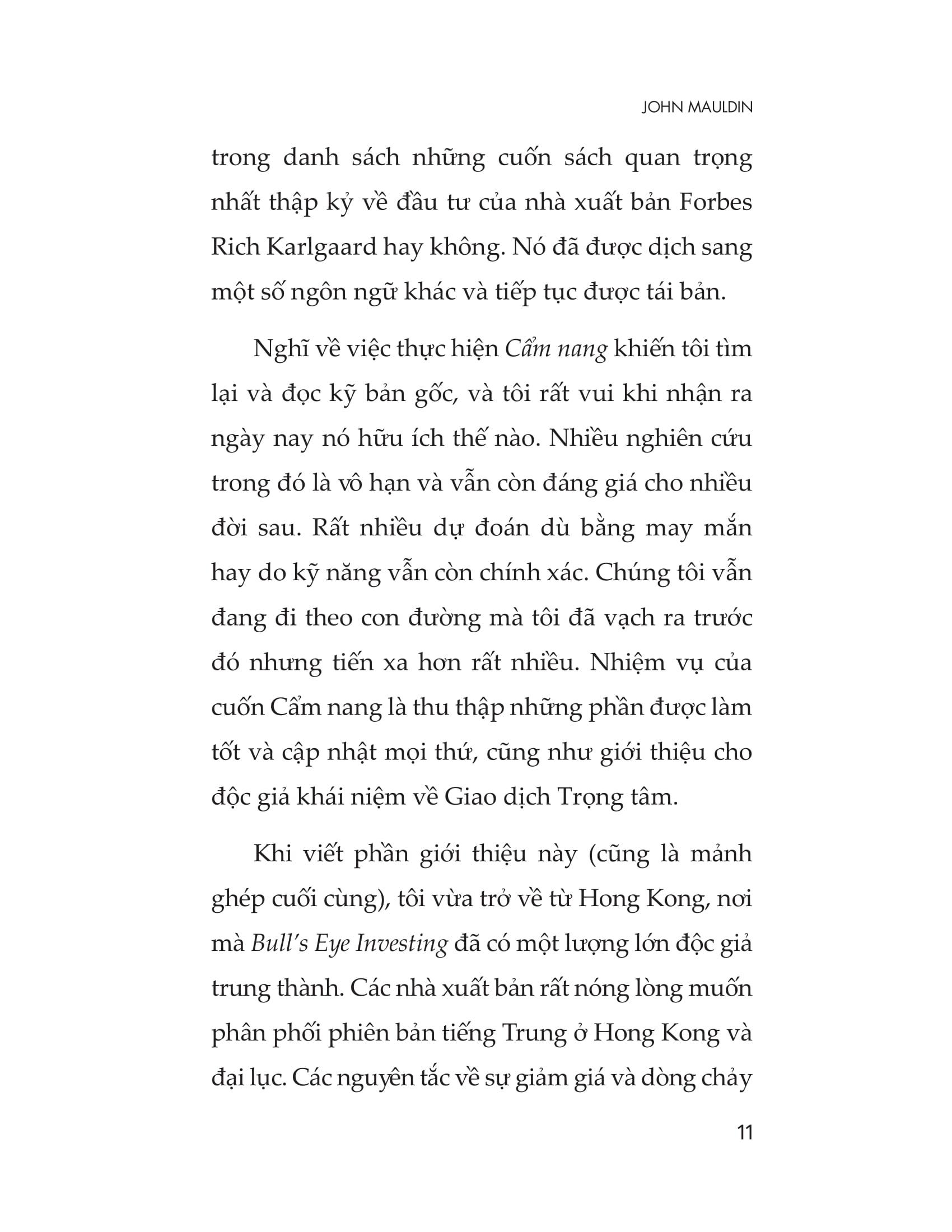 Tận dụng tối đa thị trường cũng giống như việc chạm vào một mục tiêu đang di chuyển khó khăn nhưng không phải là không thể và với cuốn sách này trong tay bạn có mọi thứ cần thiết để cải thiện con mắt đầu tư của m.ình và đưa ra các quyết định giao dịch ổn định và an toàn có thể xoay chuyển tình thế, tạo ra lợi nhuận ngay cả trong những thời điểm hỗn loạn nhất.