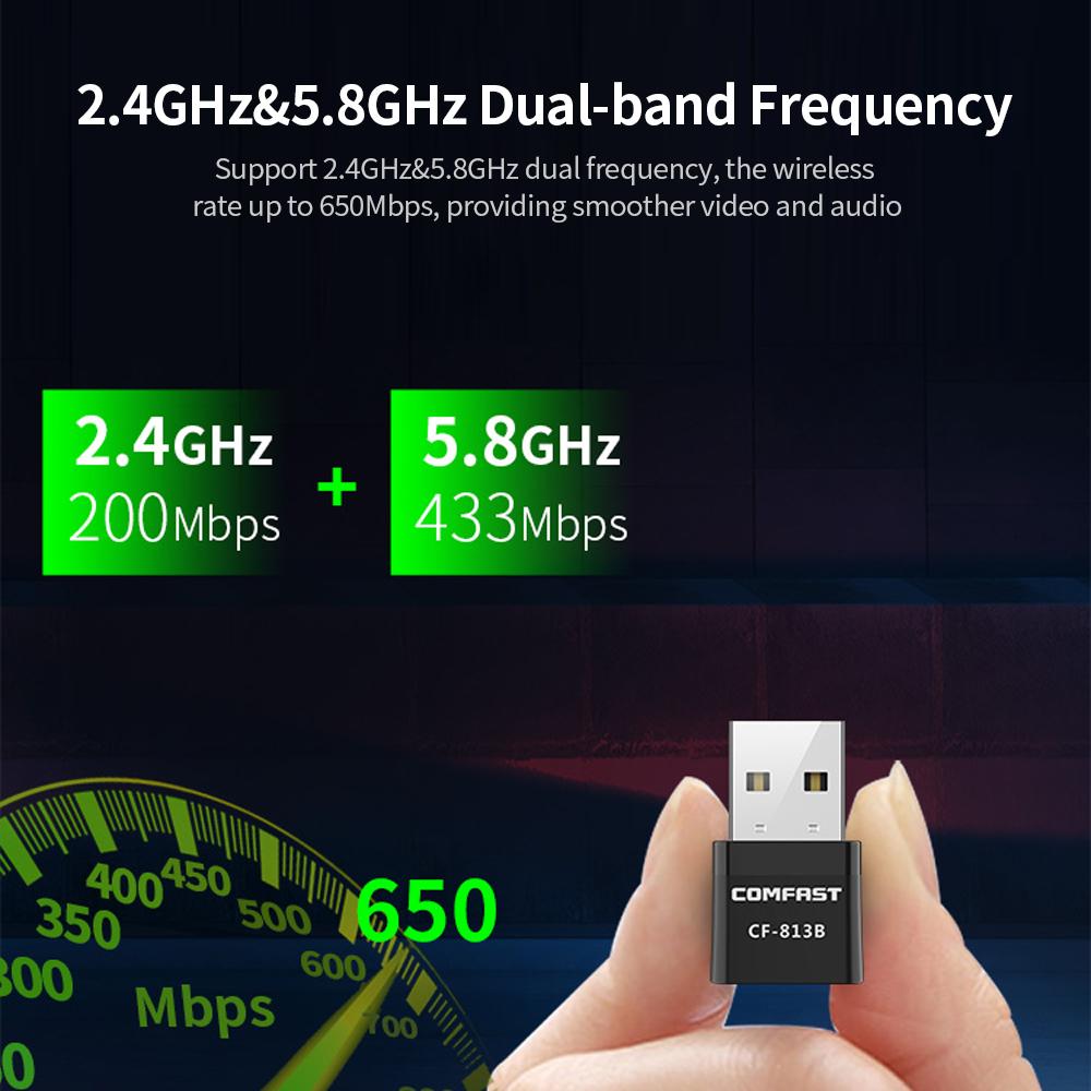 ✨Thẻ mạng không dây USB băng tần kép 2,4 & 5,8 GHz BT COMFAST CF-813B 650M