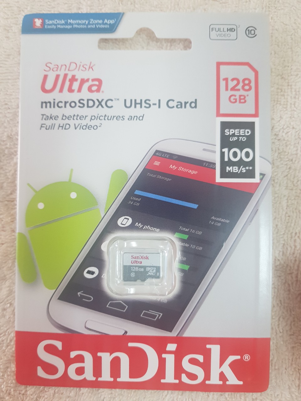 - Thẻ Nhớ Micro SDXC SanDiskk UHS-1 128GB Class 10 với dung lượng lưu trữ 128GB, bạn có thể thoải mái lưu trữ rất nhiều những dữ liệu, tập tin khác nhau như hình ảnh, âm thanh, video, tài liệu.