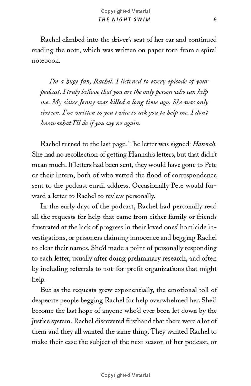 The new season of Rachel's podcast has brought her to a small town being torn apart by a devastating rape trial. A local golden boy, a swimmer destined for Olympic greatness, has been accused of raping the beloved granddaughter of the police chief. Under pressure to make Season 3 a success, Rachel throws herself into her investigation - but the mysterious letters keep coming. Someone is following her, and she won't stop until Rachel finds out what happened to her sister twenty-five years ago. Officially, Jenny Stills tragically drowned, but the letters insist she was murdered - and when Rachel starts asking questions, nobody in town wants to answer. The past and present start to collide as Rachel uncovers startling connections between the two cases - and a revelation that will change the course of the trial and the lives of everyone involved.