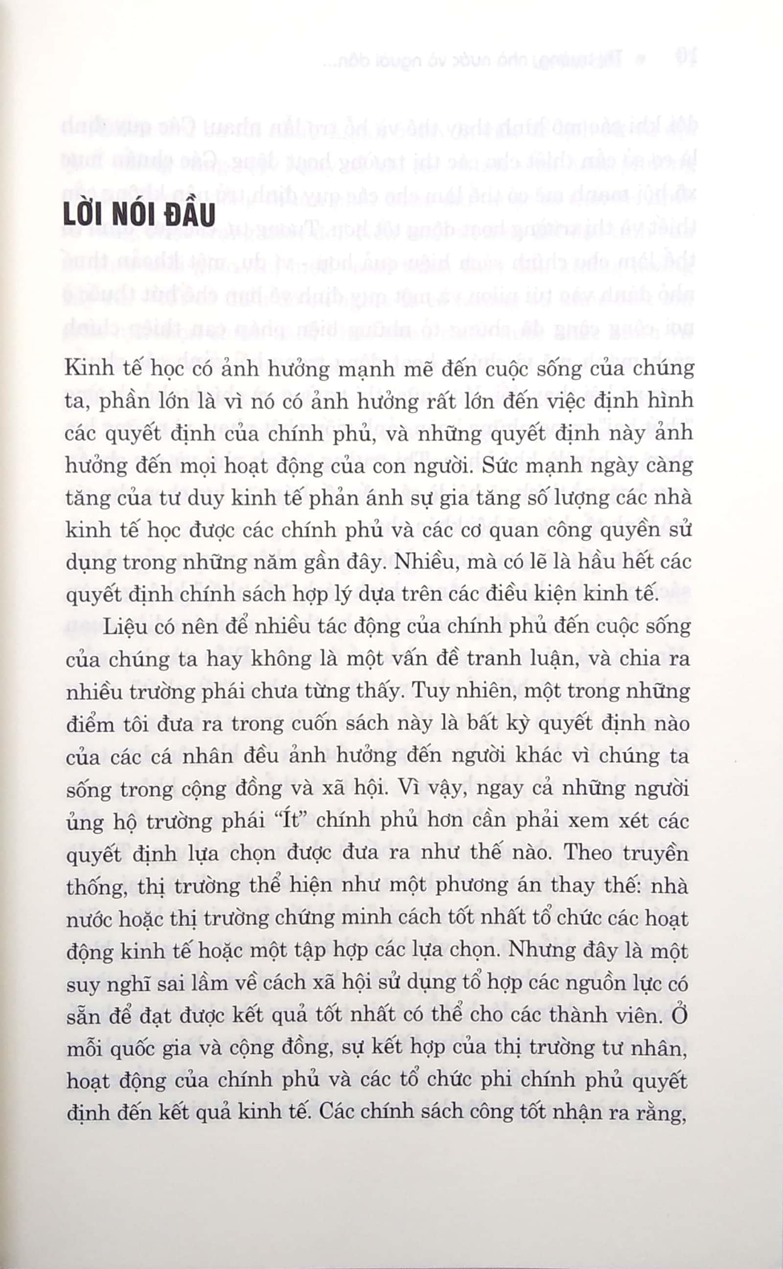 Nội dung cuốn sách đề cập đến các vấn đề: nhà nước và thị trường, xem xét vai trò tương đối của chính phủ, khu vực tư nhân và thị trường trong nền kinh tế;