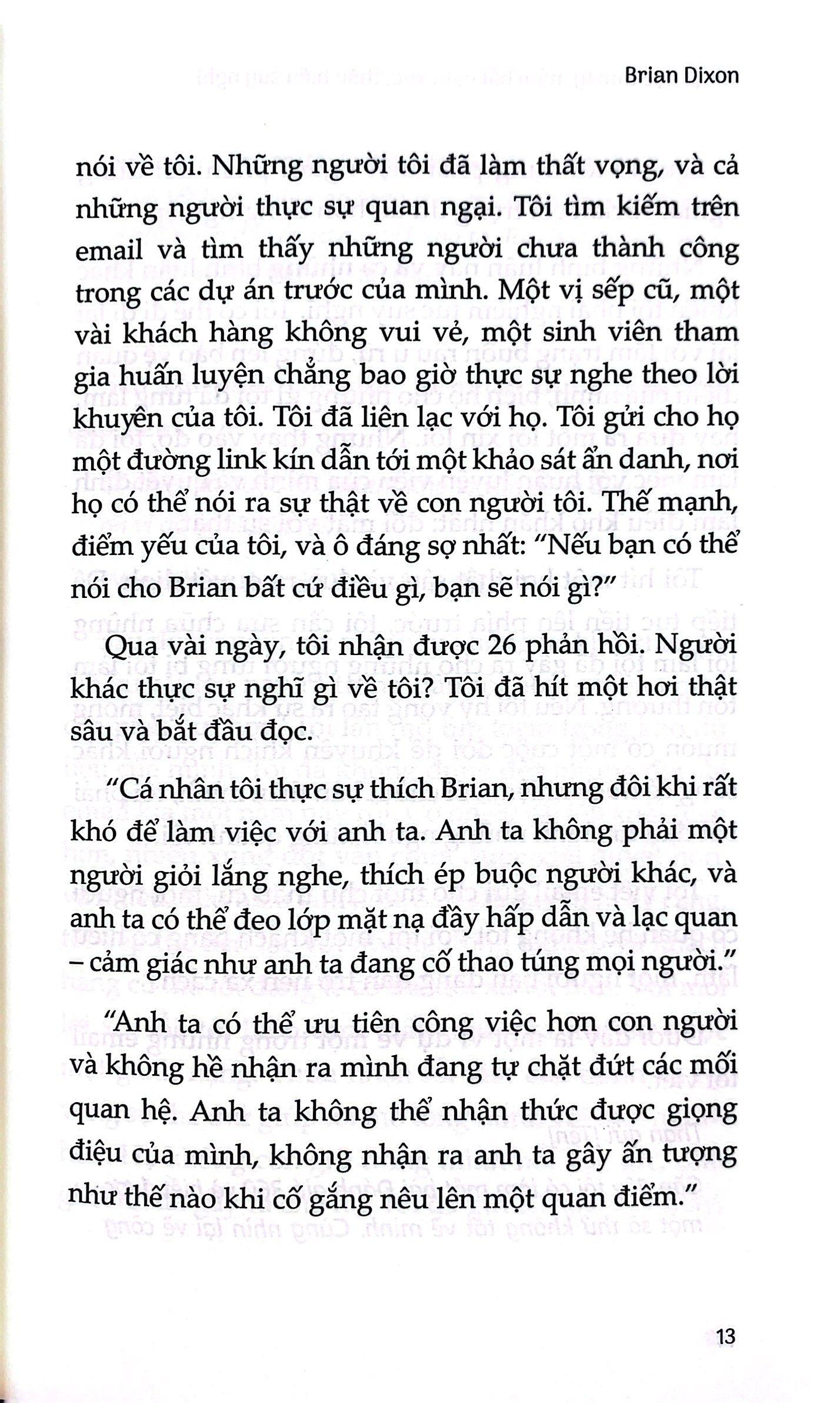 Mua tại TiktokSau khi thất bại trong nhiều mối quan hệ và dự án, Brian Dixon quyết tâm khám phá bí quyết để hạnh phúc trong công việc mà sống một cuộc đời có ý nghĩa. Trong Khéo léo đối nhân, được lòng thiên hạ, Brian trao cho bạn chiếc chìa khoá quan trọng nhất để hạnh phúc trong các mối quan hệ của bạn và mở cánh cửa đến mục tiêu, đam mê, và lợi nhuận. Sự thật là, bạn không tự mình đạt được ước mơ. Bạn cần những người xung quanh. Và họ cũng cần bạn. “Thuật đọc tâm lý, nắm bắt cảm xúc, thấu hiểu suy nghĩ’’ là cuốn sách hướng dẫn đầy đủ để giúp bạn tận dụng nguồn tài nguyên quan trọng nhất để thành công trong kinh doanh và cuộc sống. =>> Hãy cùng tác giả Brian khám phá tư duy đặt con người lên hàng đầu, bao gồm:
