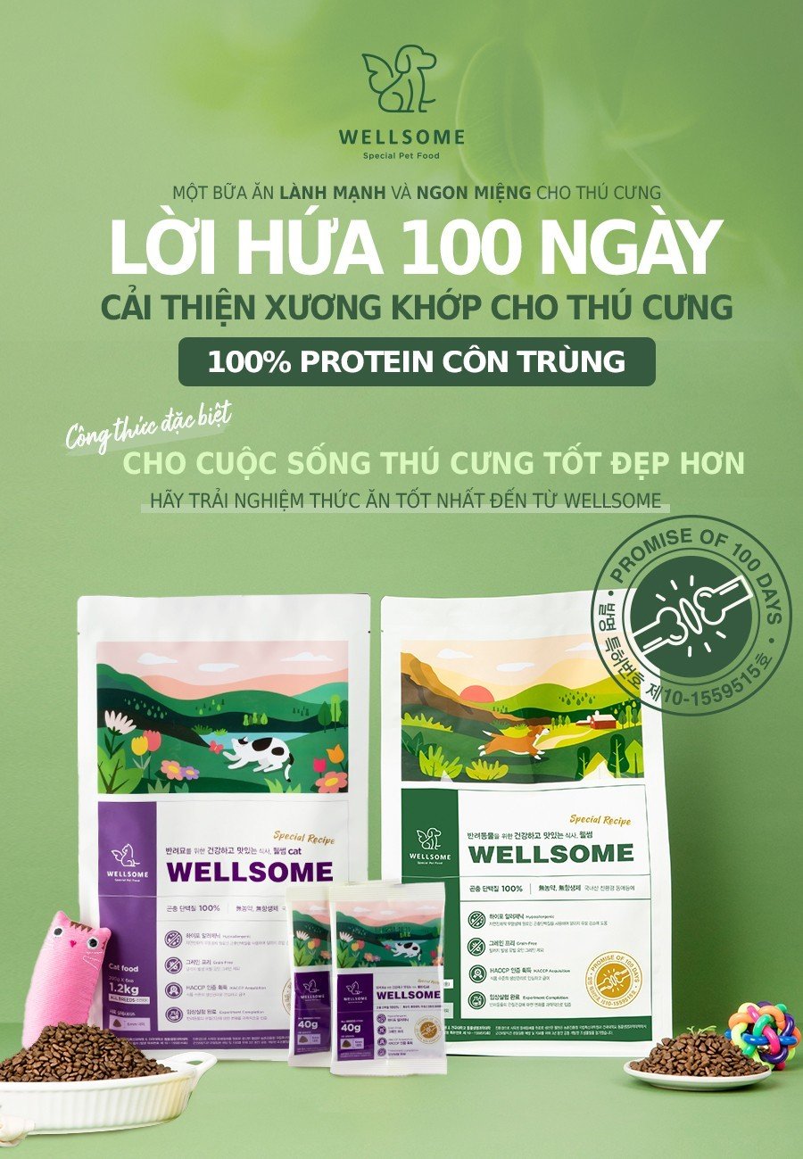 ✨Thức ăn hạt cho mèo WELLSOME 100% proteein côn trùng 1,2kg