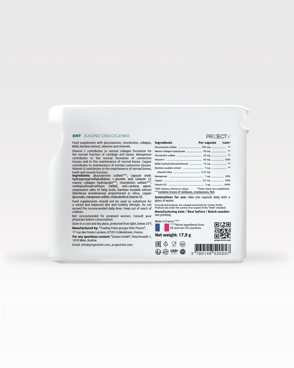 PROJECT V Direct Hit - ENT Food Supplement - Protecting the Health and Youth of Joints, Box of 30 Capsules - Made in France, Genuine Product