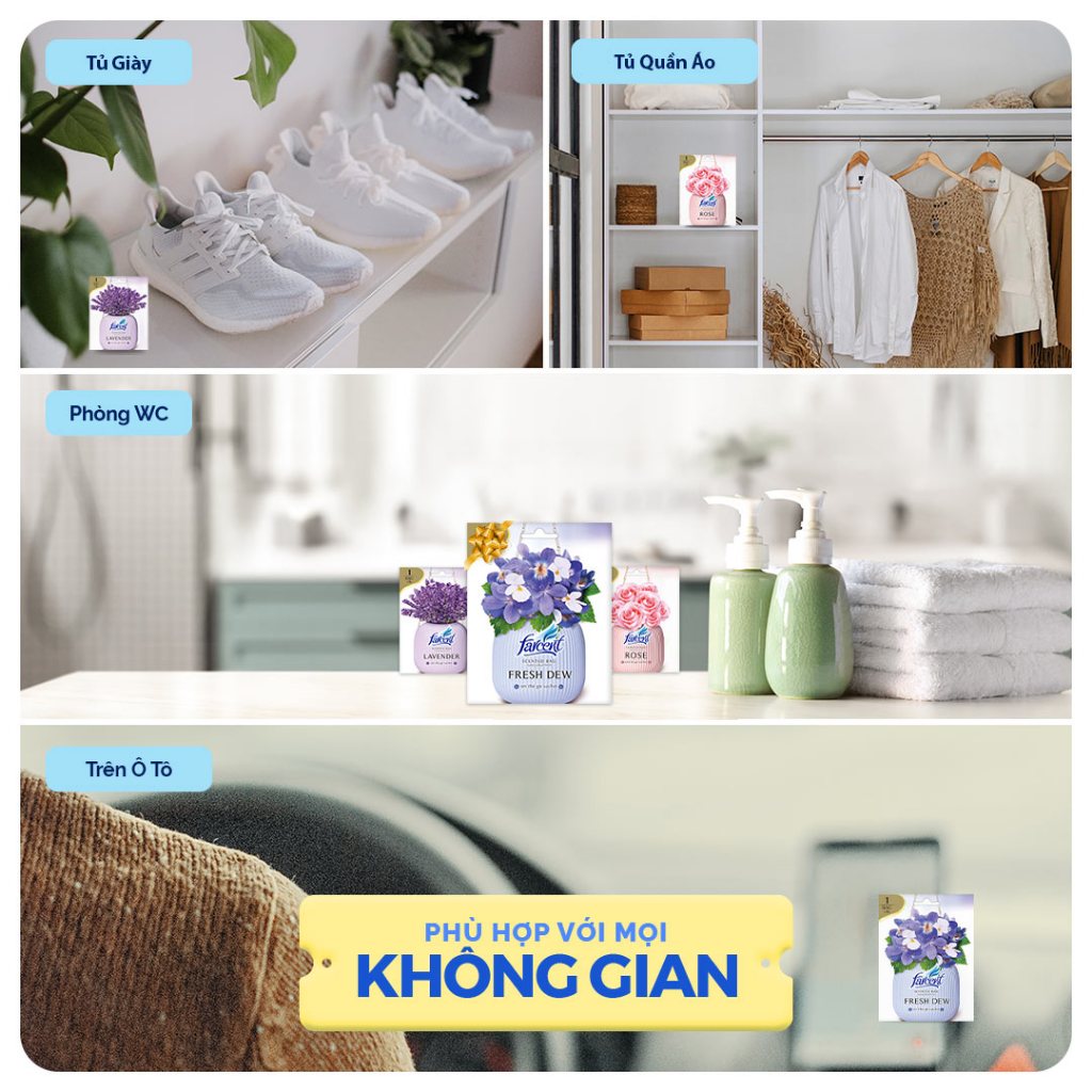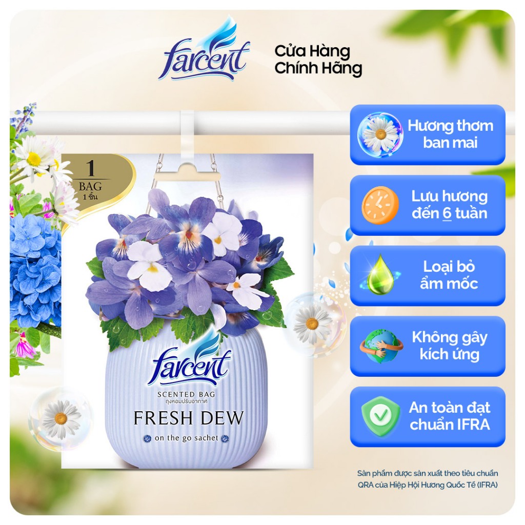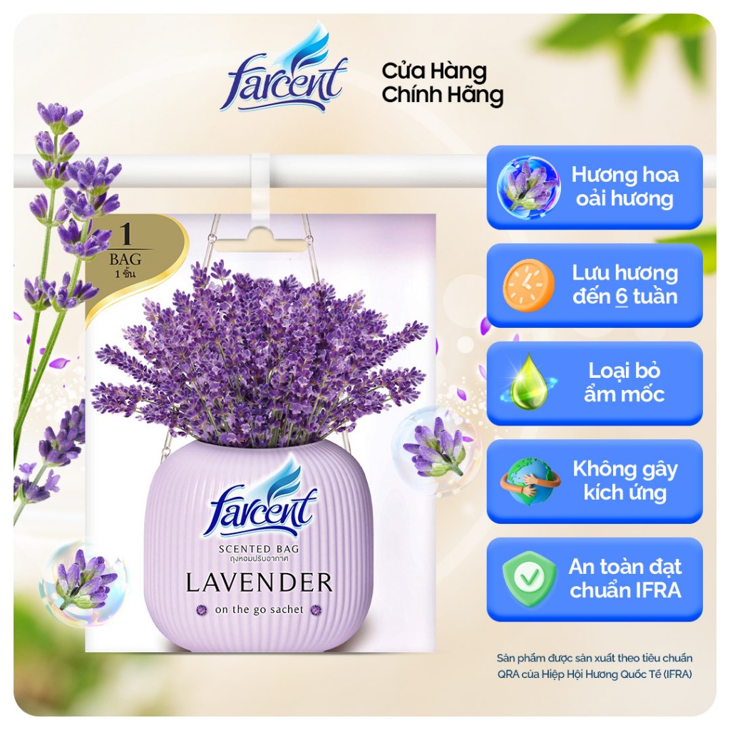 Mua tại TiktokThông tin sản Túi thơm để tủ quần áo khử mùi, chống ẩm mốc Farcent (Hương Ban Mai / Hoa Hồng / Hương Hoa Oải Hương) 10g chính hãng