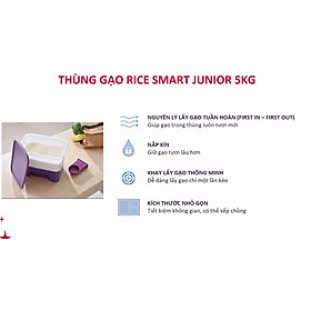 Công dụng: - Với dung tích nhỏ gọn 5kg, sản phẩm thùng gạo Rice Smart Junior phù hợp với việc bảo quản các loại thực phẩm như gạo, nếp, gạo lứt, hạt dinh dưỡng,…