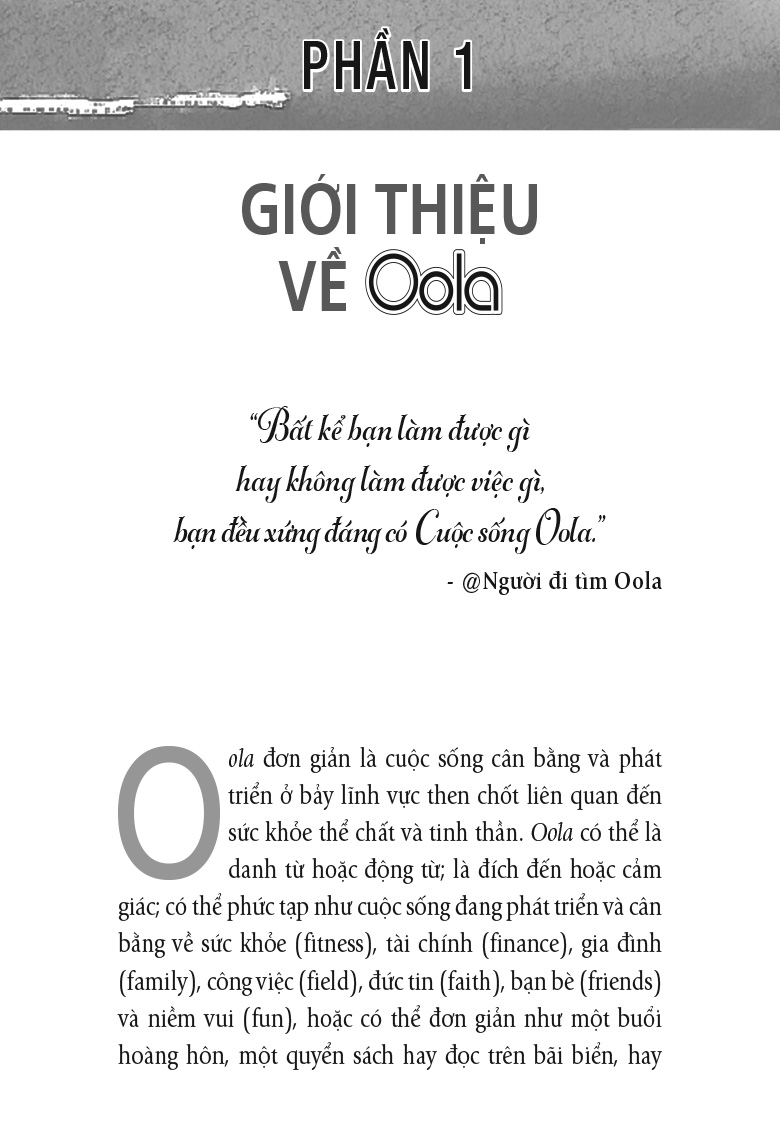 Oola - Tìm Bình Yên Giữa Vạn Biến Có bao giờ bạn cảm thấy chán nản, mệt mỏi vì mất cân bằng giữa công việc và niềm hạnh phúc riêng cho bản thân? Có bao giờ bạn tự hỏi mỗi giờ hằng ngày mình dành ra thực sự mang lại giá trị hay ý nghĩa nào cho cuộc sống? Cuốn sách “Oola – Tìm bình yên giữa vạn biến” đã định nghĩa lại thế nào là một cuộc sống tuyệt vời mà bất cứ ai trong chúng ta cũng khao khát và tìm cách đạt được nó. Đó là cuộc sống cân bằng, mãn nguyện về sức khỏe (fitness), tài chính (finance), gia đình (family), công việc (field), đức tin (faith), bạn bè (friends) và niềm vui (fun). Không phải là những lời khuyên sáo rỗng, “Oola Tìm bình yên giữa vạn biến” chứa đựng những mẩu truyện nhỏ khiến bạn có thể ngạc nhiên “à ra thế” và cùng một loạt những lời khuyên thực tế mà bạn có thể chuyển hóa ngay thành hành động hoặc thói quen. Trong cuốn sách này, bạn sẽ học được ba bước đơn giản để cân bằng và phát triển cuộc sống, khám khá những gì ngăn cản bạn đến “cuộc sống trong mơ” và cách đến được đó nhanh hơn cũng như tại sao, dù bạn thành công hay thất bại bạn luôn xứng đáng với một cuộc sống tốt hơn… và rất nhiều điều thú vị, hữu ích khác. Cuốn sách “Oola – Tìm bình yên giữa vạn biến” đã nhận được một loạt khen ngợi từ các giả giả hàng đầu, vận động viên chuyên nghiệp, những nhà lãnh đạo uy tín. 100,000 bản in lần đầu của cuốn sách “Oola – Tìm bình yên giữa vạn biến” đã được hai tác giả Troy Amdahl và Dave Braun tự xuất bản và bán hết mà không cần đến bất kỳ NXB nào; 25,000 bản in tái bản cũng được bán hết trong vòng 1 tháng ngay sau đó. Nếu bạn muốn có được một cuộc sống hạnh phúc, ý nghĩa và vẫn đạt được những thành công trong sự nghiệp, “Oola – Tìm bình yên giữa vạn biến” là lựa chọn không thể bỏ qua. BOX Troy Amdahl và Dave Braun là đồng tác giả của loạt sách Oola. Hai tác giả là những chuyên gia nổi tiếng trong việc thiết lập mục tiêu và xây dựng sự cân bằng giữa cuộc sống cá nhân và công việc. Họ đã đi khắp nước Mỹ trên chiếc xe buýt Volkswagen đời 1970 được dán đầy những mẩu giấy sticker với dòng chữ viết tay nắn nót ghi lại ước mơ của những người mà họ đã gặp trên đường. Troy và Dave đang nỗ lực thay đổi thế giới bằng Oola, bằng cách giúp mọi người xóa bỏ những căng thẳng bắt nguồn từ cuộc sống thiếu cân bằng, từ đó giúp khai phóng vẻ đẹp và tiềm năng vĩ đại trong mỗi con người chúng ta.