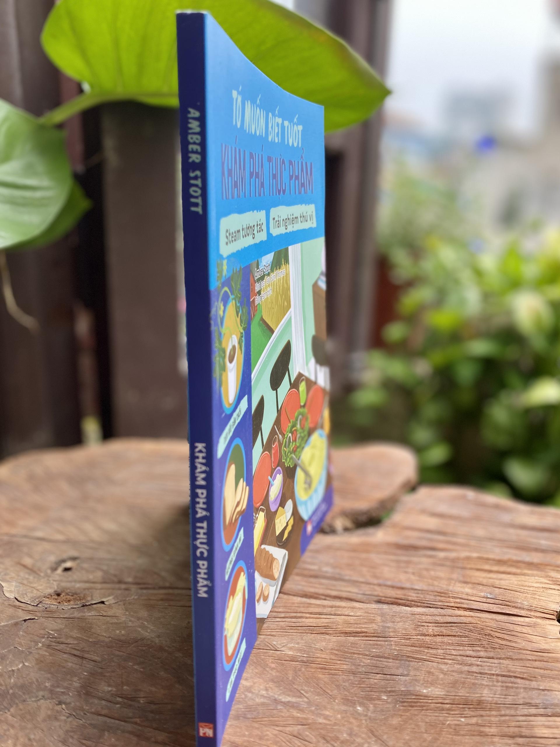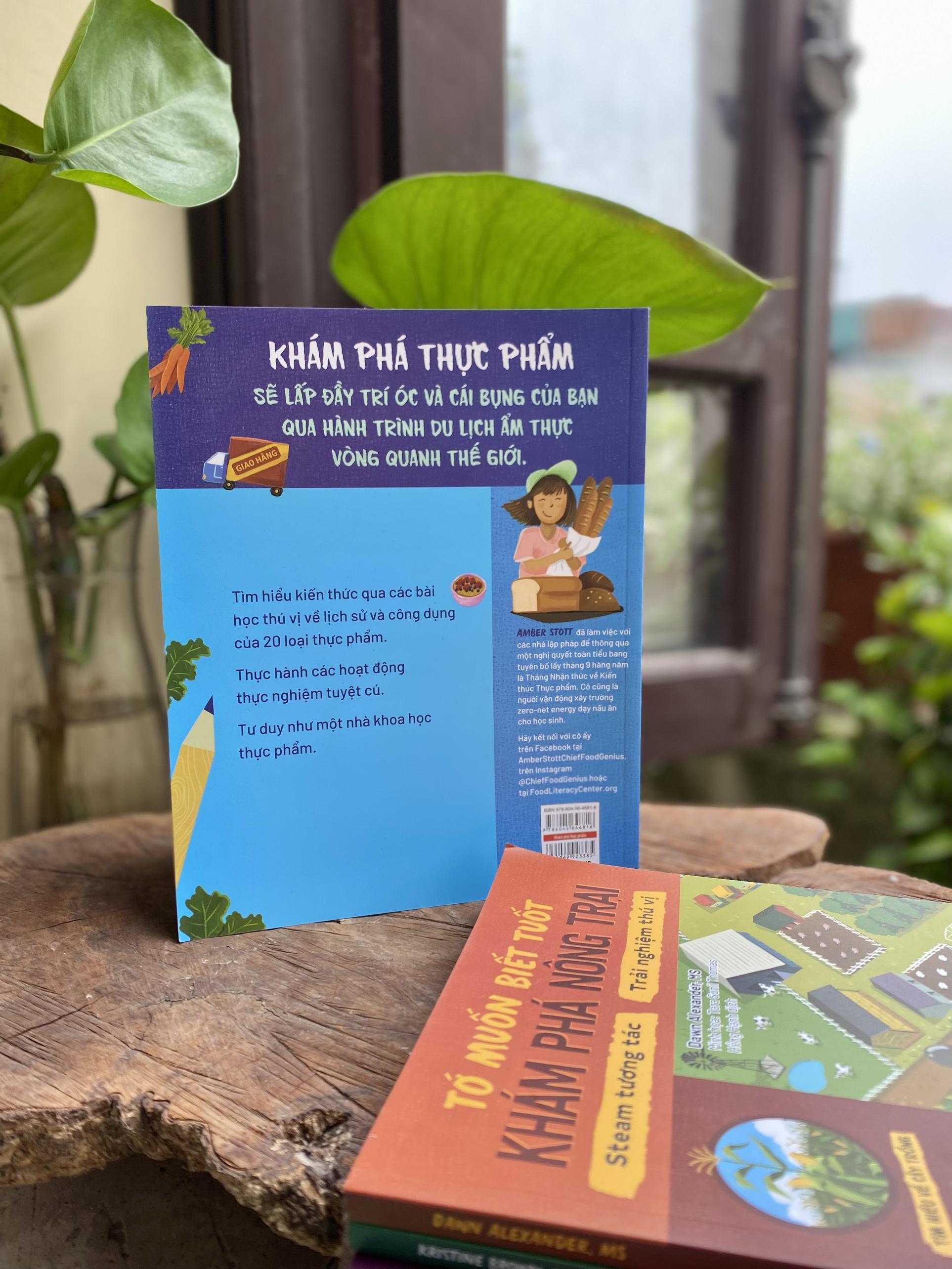 Mua tại Tiktok- Tên sách: TỚ MUỐN BIẾT TUỐT – KHÁM PHÁ THỰC PHẨM Tác giả: Amber Stott Minh họa: Tara Sunil Thomas Dịch giả: Hồng Hạnh Thể loại: Bổ trợ kiến thức cho trẻ - Thiếu nhi Khổ sách: 20x25cm Tổng số trang: 100 Giá bìa: 129.000đ Mã ISBN: 978-604-56-4681-6 Năm xuất bản: 2024 KHÁM PHÁ THỰC PHẨM sẽ lấp đầy trí óc và cái bụng của bạn qua hành trình du lịch ẩm thực vòng quanh thế giới. “Tớ muốn biết tuốt: Khám phá thực phẩm” đưa trẻ bước vào hành trình khám phá những bí ẩn về lịch sử, khoa học và văn hoá ẩm thực, những sự thật thú vị và hé lộ về các nền ẩm thực trên thế giới. Đây là một cuốn sách dành cho những người trẻ muốn khám phá thế giới ẩm thực. Ngoài những thông tin bổ ích và độc đáo về thực phẩm như nguồn gốc của thực phẩm, lịch sử văn hoá, cách nó ảnh hưởng đến cơ thể và giúp trẻ cảm thấy kết nối với thực phẩm mà mình ăn hằng ngày… Với 6 chương cùng 20 bài học, không chỉ giúp trẻ hiểu rõ hơn về những món ăn hằng ngày mà còn mang đến những kiến thức thú vị về nguồn gốc, cách chế biến và giá trị dinh dưỡng của thực phẩm. Điểm đặc biệt của cuốn sách là nó không chỉ đưa ra những bài học, lý thuyết khô khan mà sau đó, trẻ sẽ có cơ hội vận dụng kiến thức để hoàn thành hoạt động trải nghiệm, thực hành và được hướng dẫn để ghi chép lại những thu hoạch của bản thân: Bài học, sự thật thú vị về món ăn: Các bài học được minh hoạ đầy màu sắc, giúp độc giả tìm hiểu và nghiên cứu về 20 loại thực phẩm khác nhau. Chúng ta sẽ cùng tìm hiểu lịch sử của những loại thực phẩm này, bao gồm cả nguồn gốc của chúng và các món ăn phái sinh có liên quan. Hoạt động thực nghiệm: Vận dụng dụng các kiến thức ở phần trên qua hoạt động trải nghiệm, thực hành. Mỗi một hoạt động thực nghiệm là một công thức nấu ăn hoặc thí nghiệm khoa học kèm theo các nguyên vật liệu cần thiết và hướng dẫn cụ thể để hoàn thành hoạt động. Ghi chép khoa học: Giúp trẻ hình thành lối tư duy như một nhà khoa học và nắm bắt những gì đang được học. Trẻ sẽ phải tự đào sâu suy nghĩ vận dụng các kiến thức ở phần bài học, trả lời những câu hỏi như: Bạn đã quan sát thấy được những gì? Bạn đã thực hành những gì? Mối liên hệ giữa hoạt động thực nghiệm này với văn hoá lịch sử là gì?