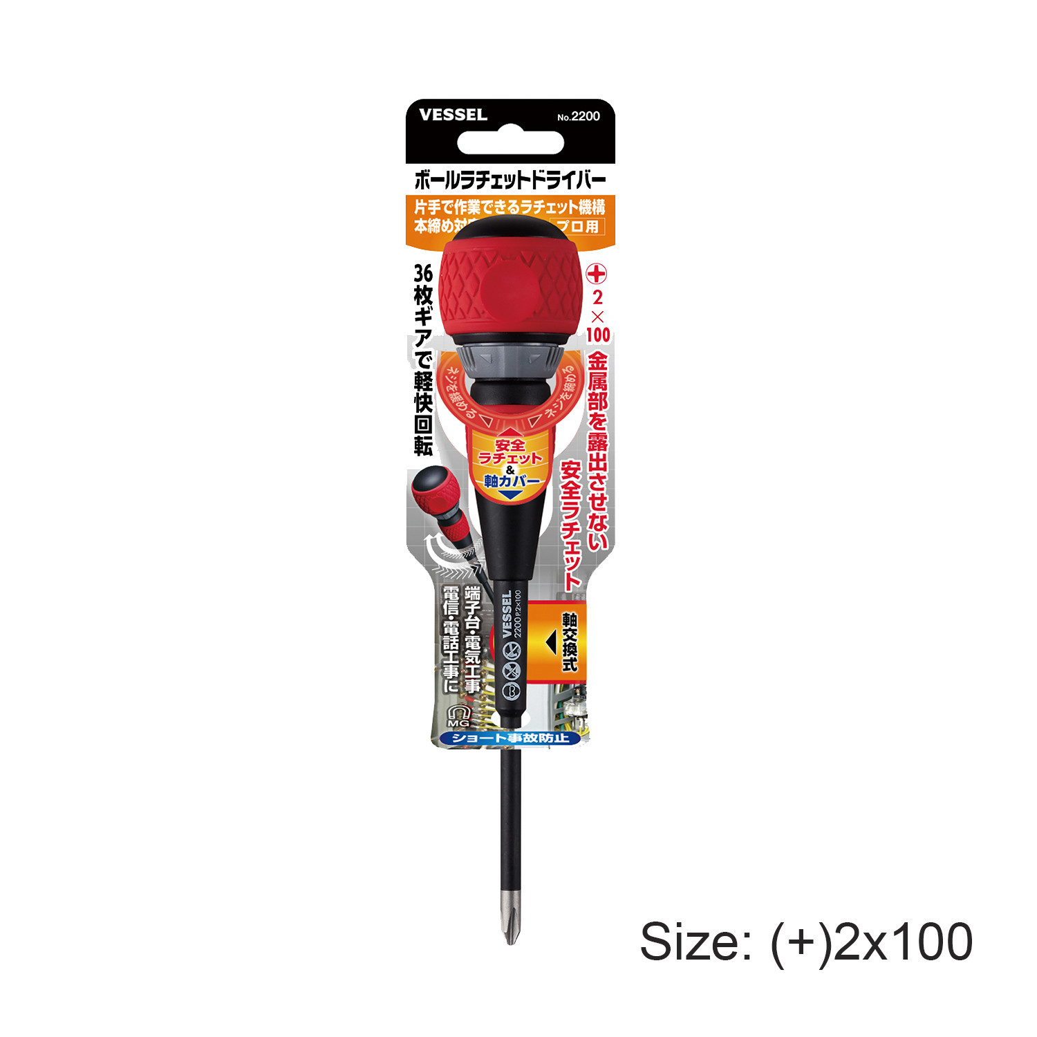 Tuốc nơ vít bánh có đảo chiều Vessel No.2200+2x150 No2200-6x150 | Ball Ratchet Screwdriver No.2200
