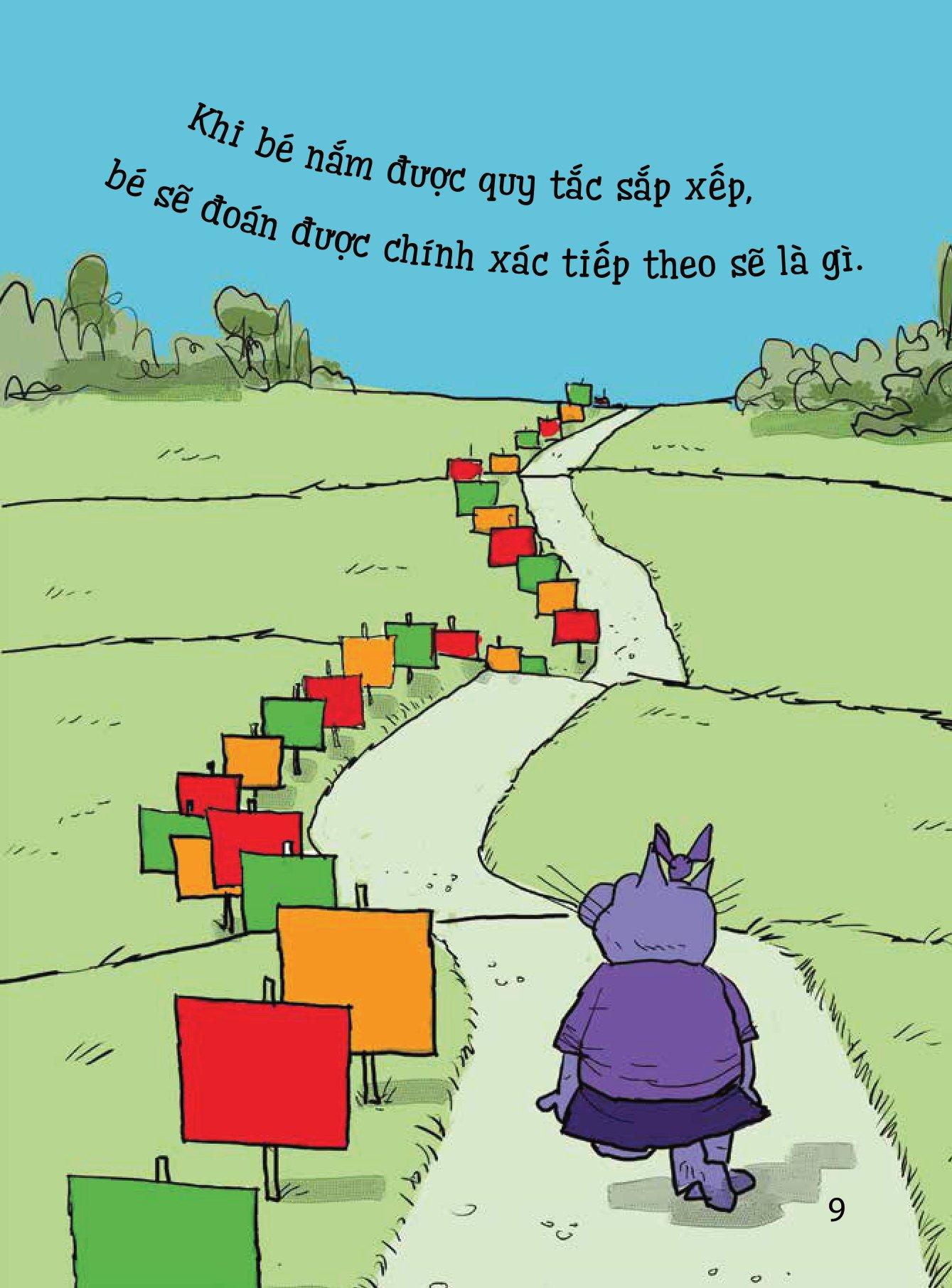 Đỏ, xanh, đỏ… rồi đến màu gì nhỉ?: Giúp bé làm quen với khái niệm sắp xếp theo quy tắc với các ví dụ từ màu sắc, hình dạng, đồ vật gần gũi xung quanh bé.