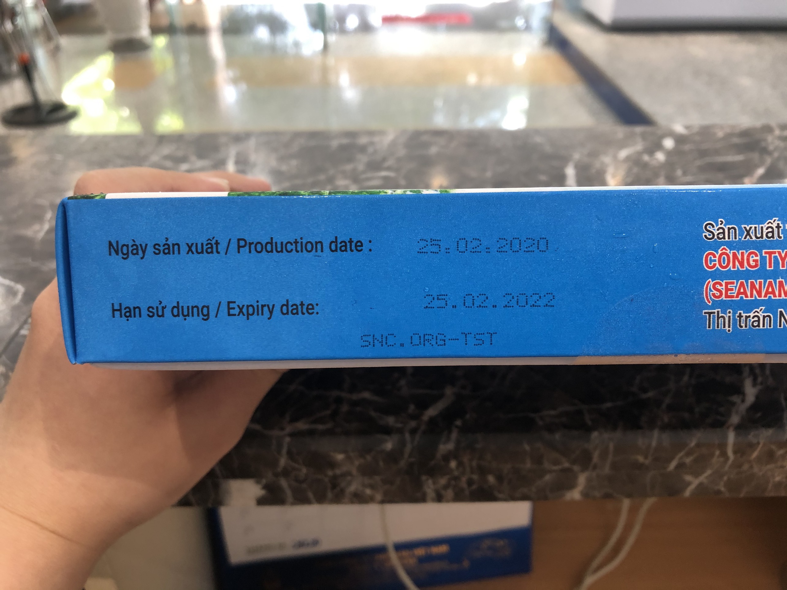 ( Hộp màu xanh cam là hộp bao bì mới của Seaprodex)