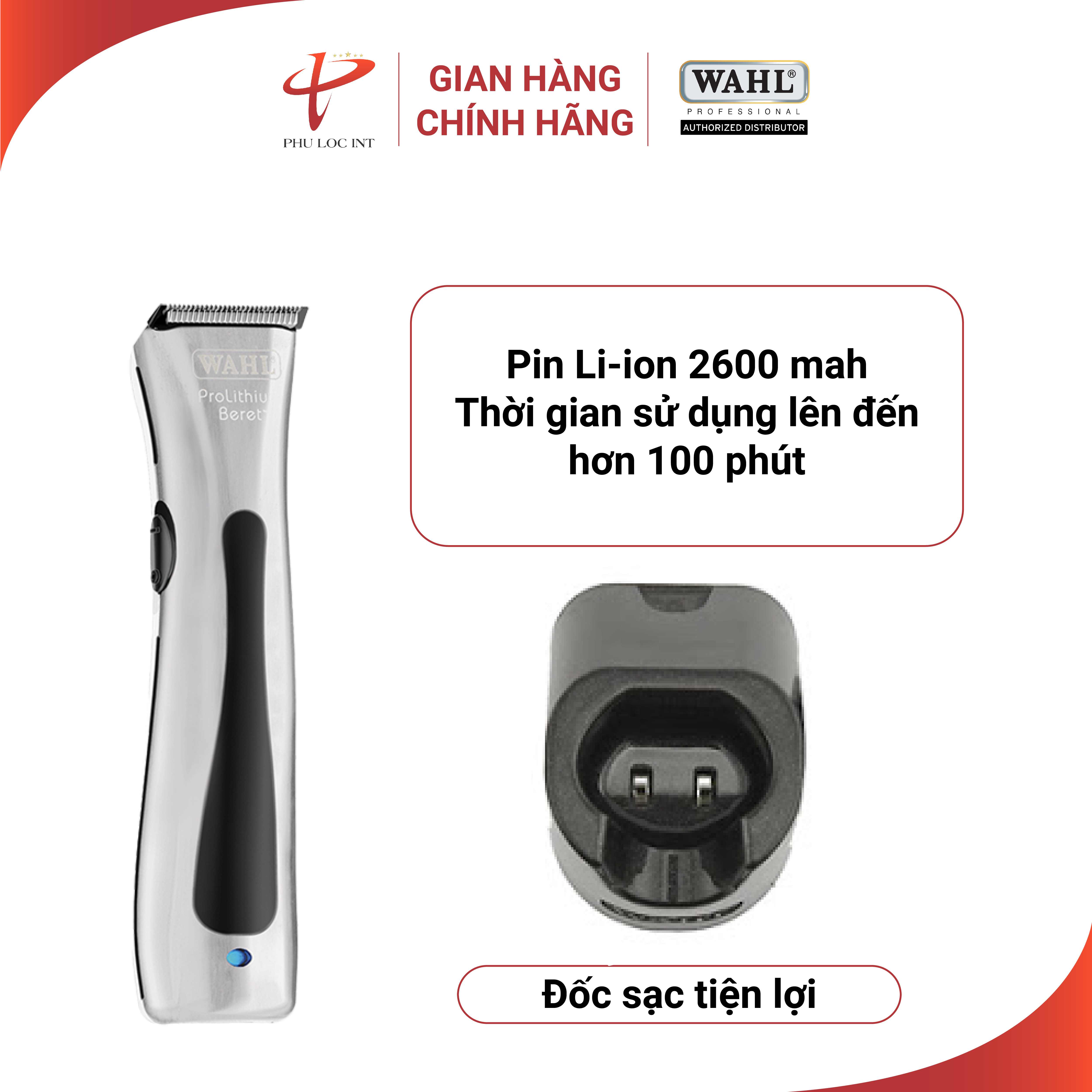 - Tông Đơ Wahl Beret sử dụng công nghệ pin mới nhất lithium ion một lần sạc sử dụng liên tiếp được 120 phút. Bộ chốt trên lưỡi cung cấp độ chính xác cao khi