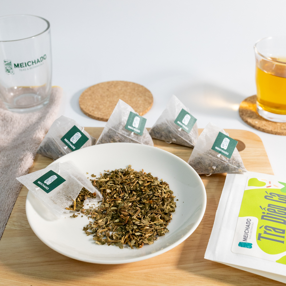 Trà Diếp cá loại túi lọc, giúp sử dụng thuận tiện và nhanh chóng! Diếp cá sấy khô cho vị hương thơm mát, không còn tanh, được yêu chuộng sủa dụng như thức uống giải