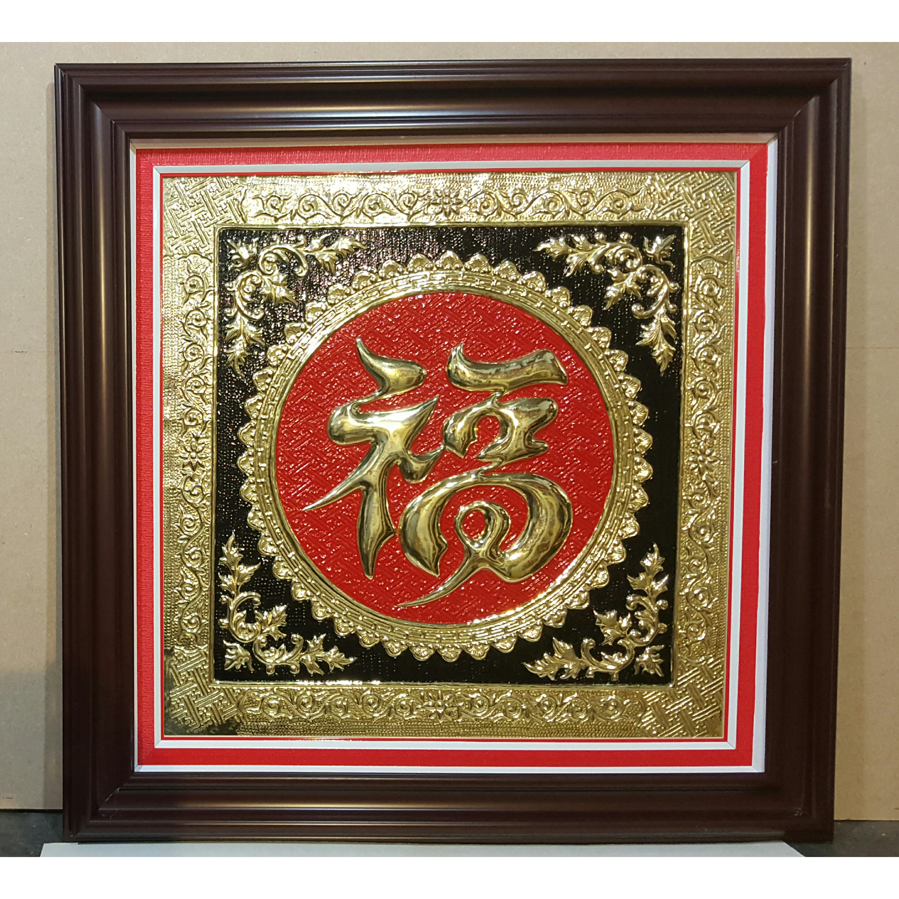 Tranh chữ Phúc bằng đồng mạ vàng 24k khổ vuông 38cm