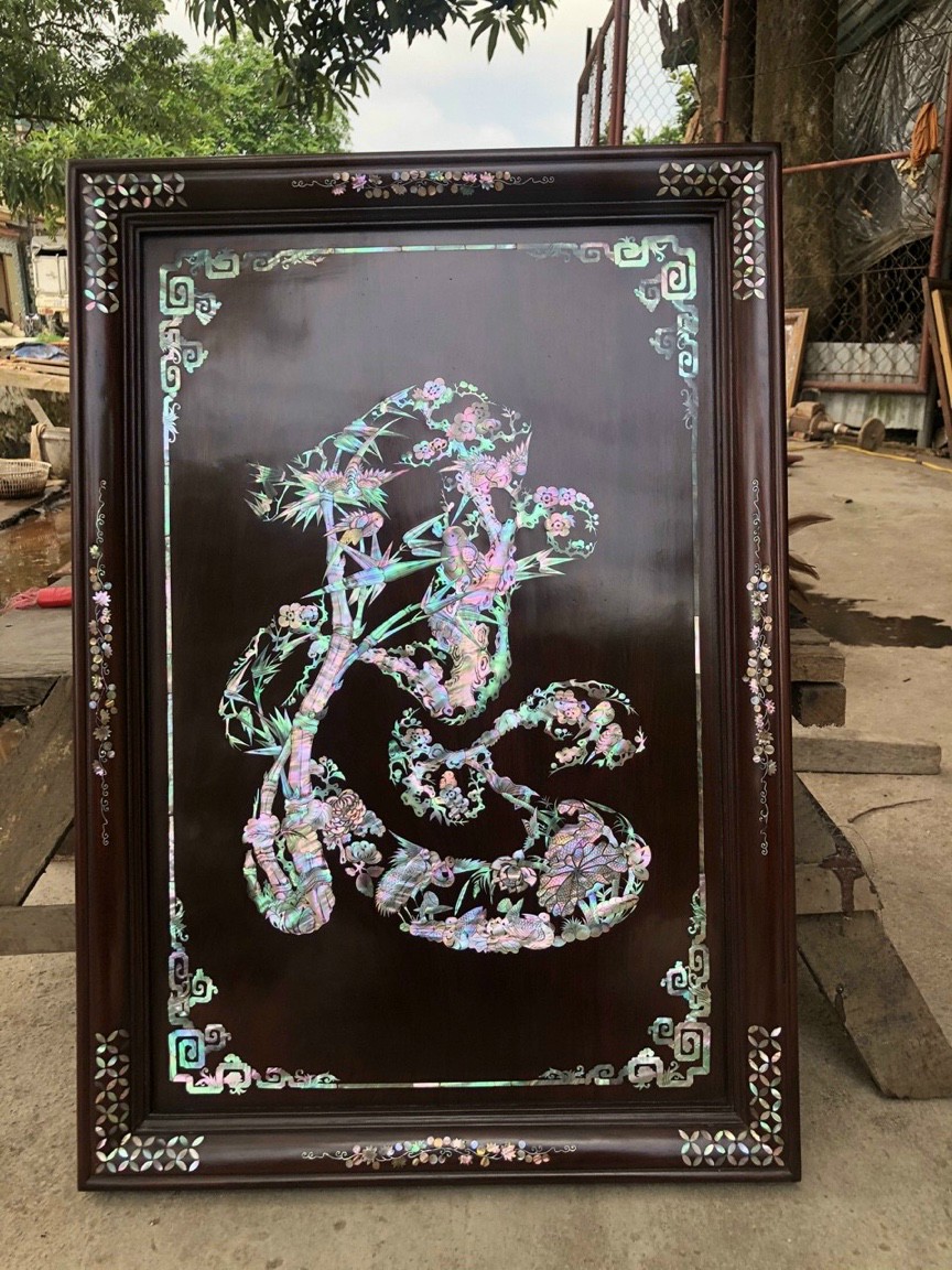 ✨Tranh chữ nhẫn khảm ốc singgapore kết hợp vời lền gỗ gụ kt 50×70×3.5cm