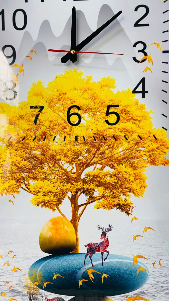 Tranh đồng hồ tráng gương hươu vàng cách điệu - Kích thước của tranh : 35x70cm 45x90cm 55x110cm 60x120cm - Chất liệu : Tráng gương - Khách hàng muốn thay đổi sản phẩm , kích