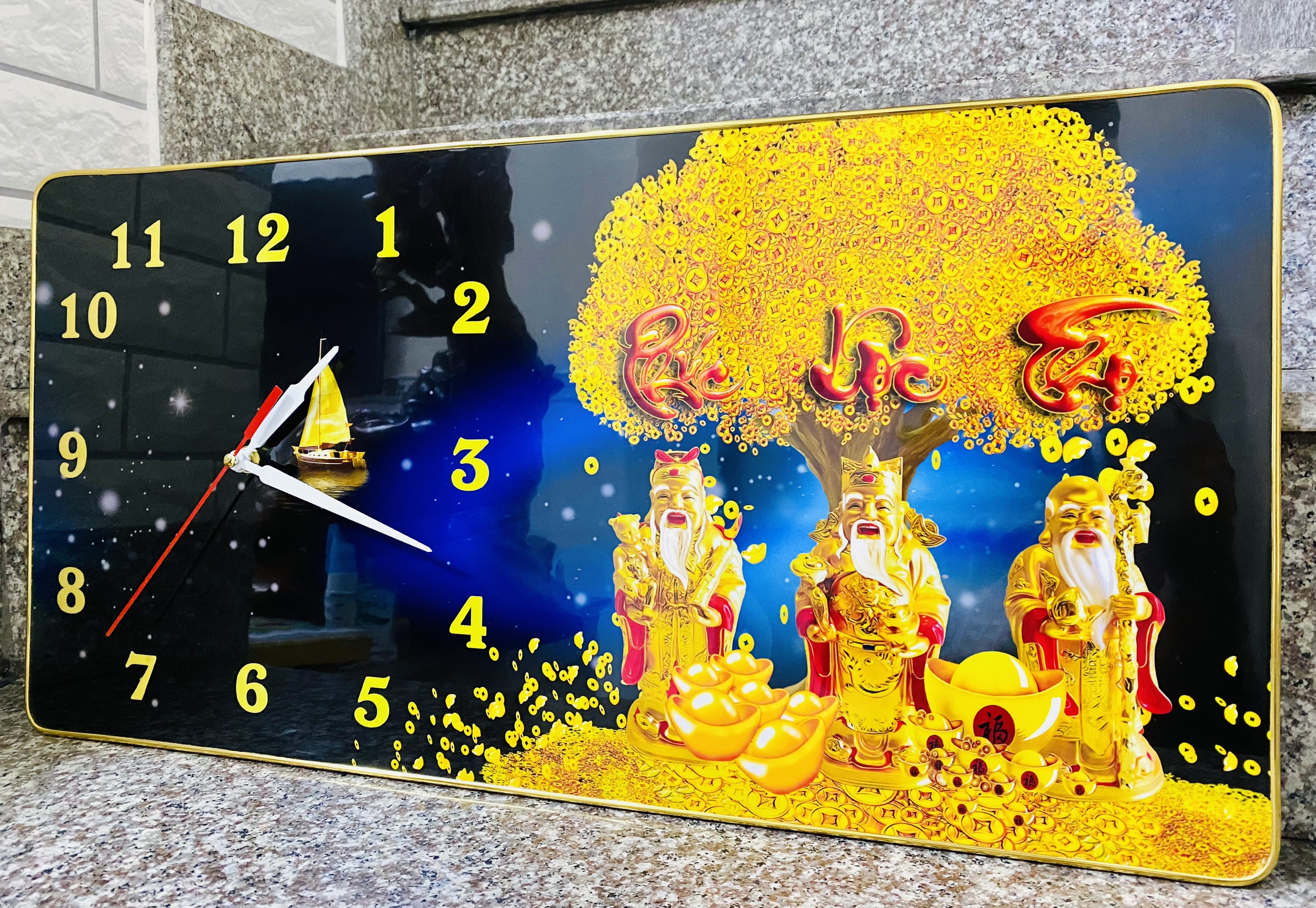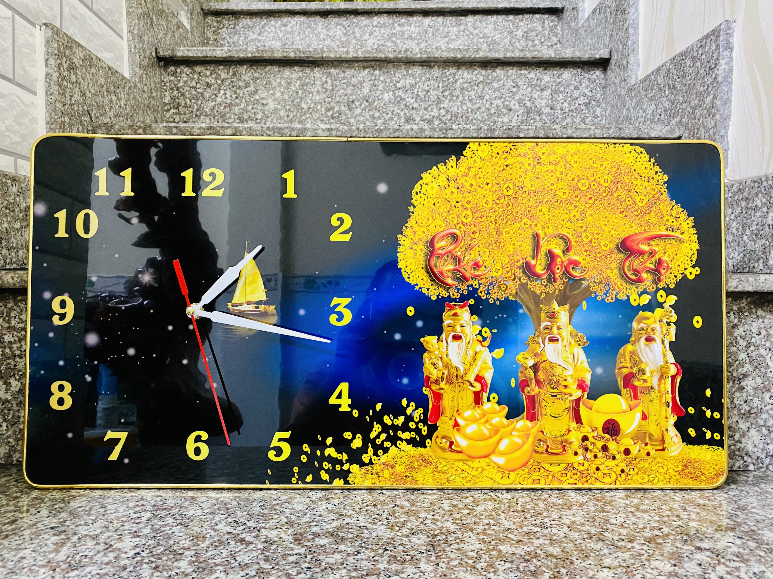 Tranh đồng hồ tráng gương phúc lộc thọ