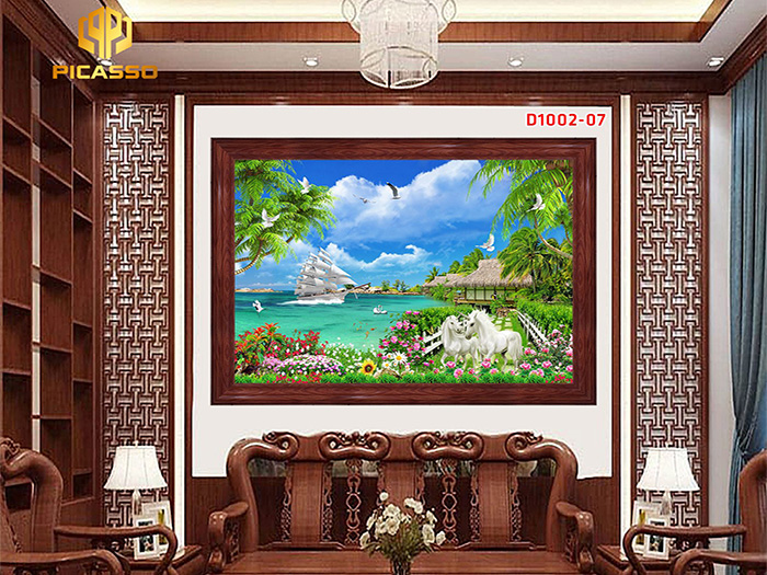 Tranh được sản xuất trên công nghệ in UV cho ra sản phẩm đẹp,sắc nét sống động.