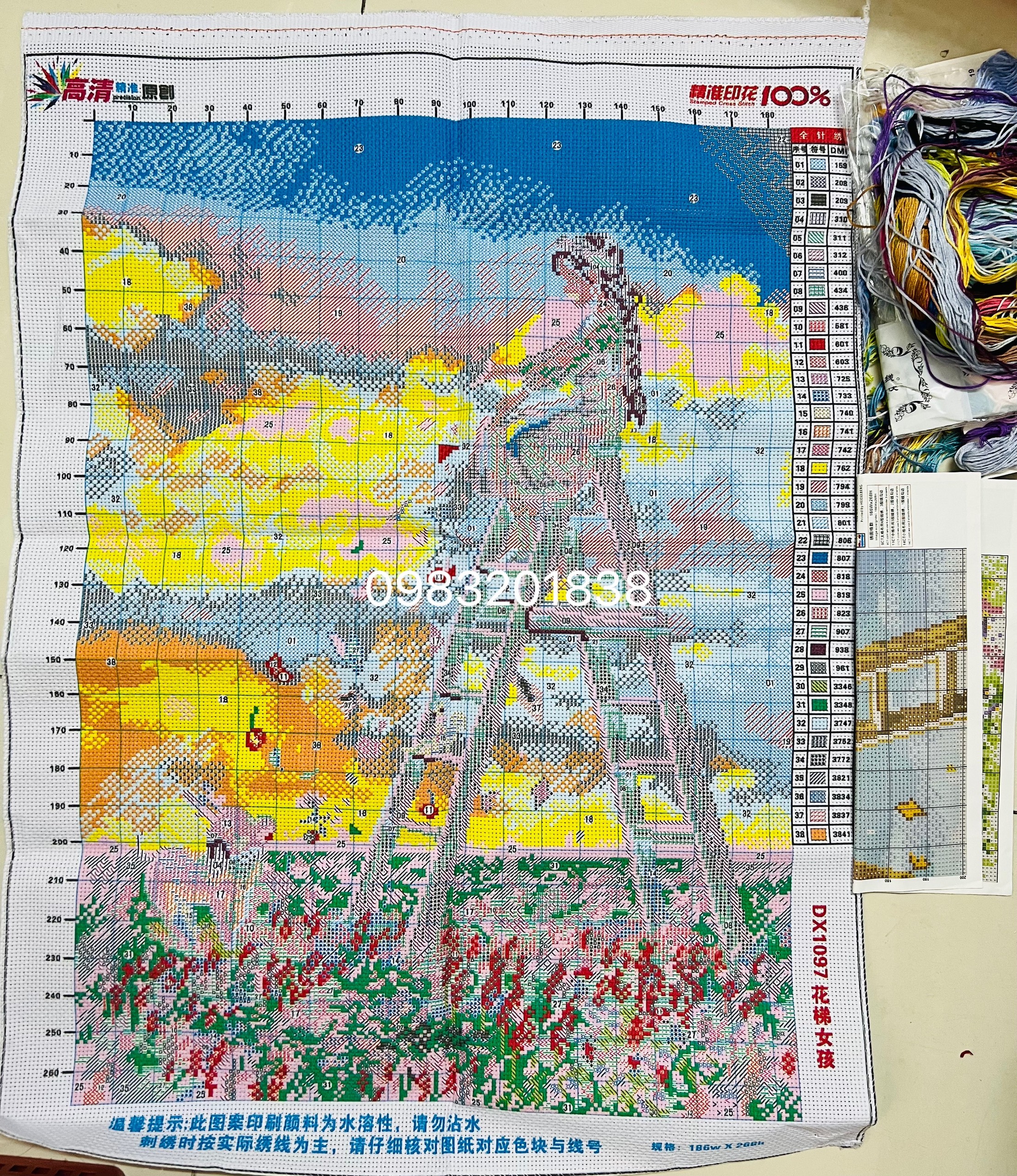 Thể loại: Tranh thêu chữ thập - sản phẩm này là tranh chưa thêu. Sản phẩm này là tranh chỉ nhiều, vải dày, phôi in rõ. Vị trí khách cần thêu trên tranh: thêu kín