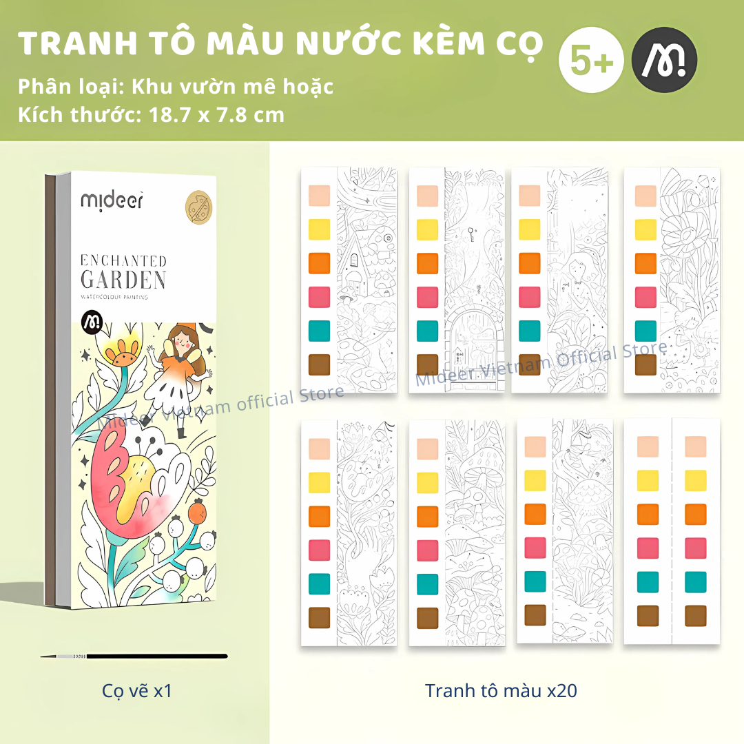 CHÀO MỪNG BẠN ĐẾN VỚI MIDEER VIETNAM HÀNG SẴN SHIP HỎA TỐC, BẢO HÀNH CHÍNH HÃNG ————————————— Tranh Tô Màu Nước Kèm Cọ Mideer Watercolour Painting cho bé Bộ tranh tô màu nước mang đến